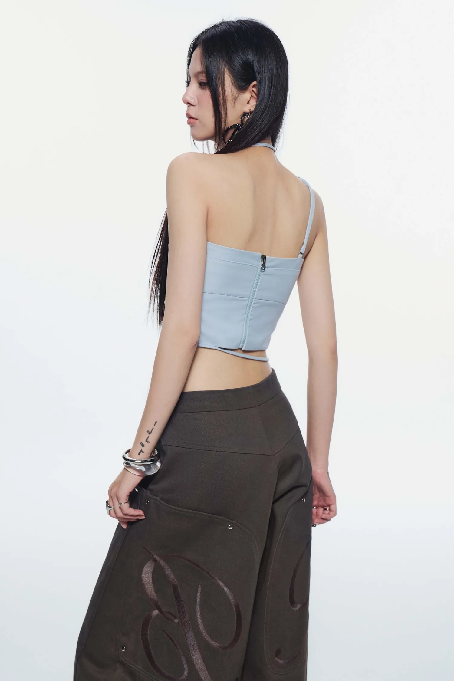 長褲設有大型貼袋,後側繡有棕色字母裝飾