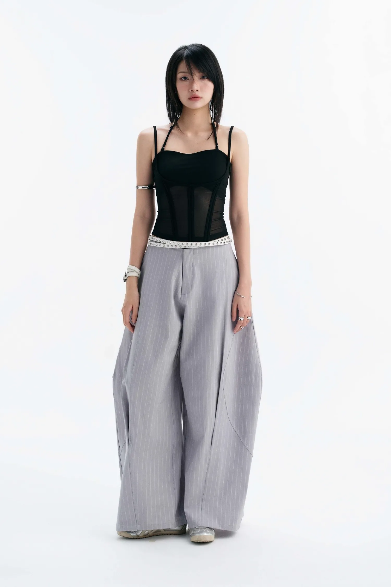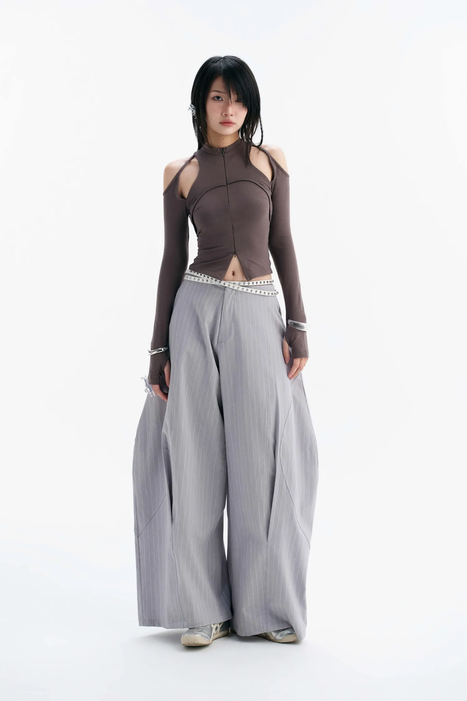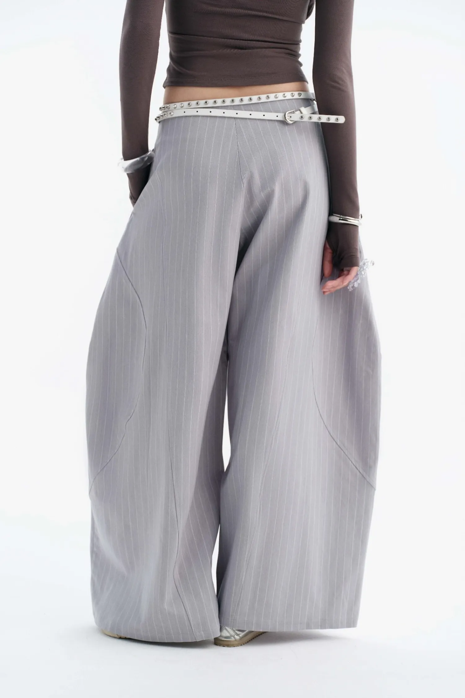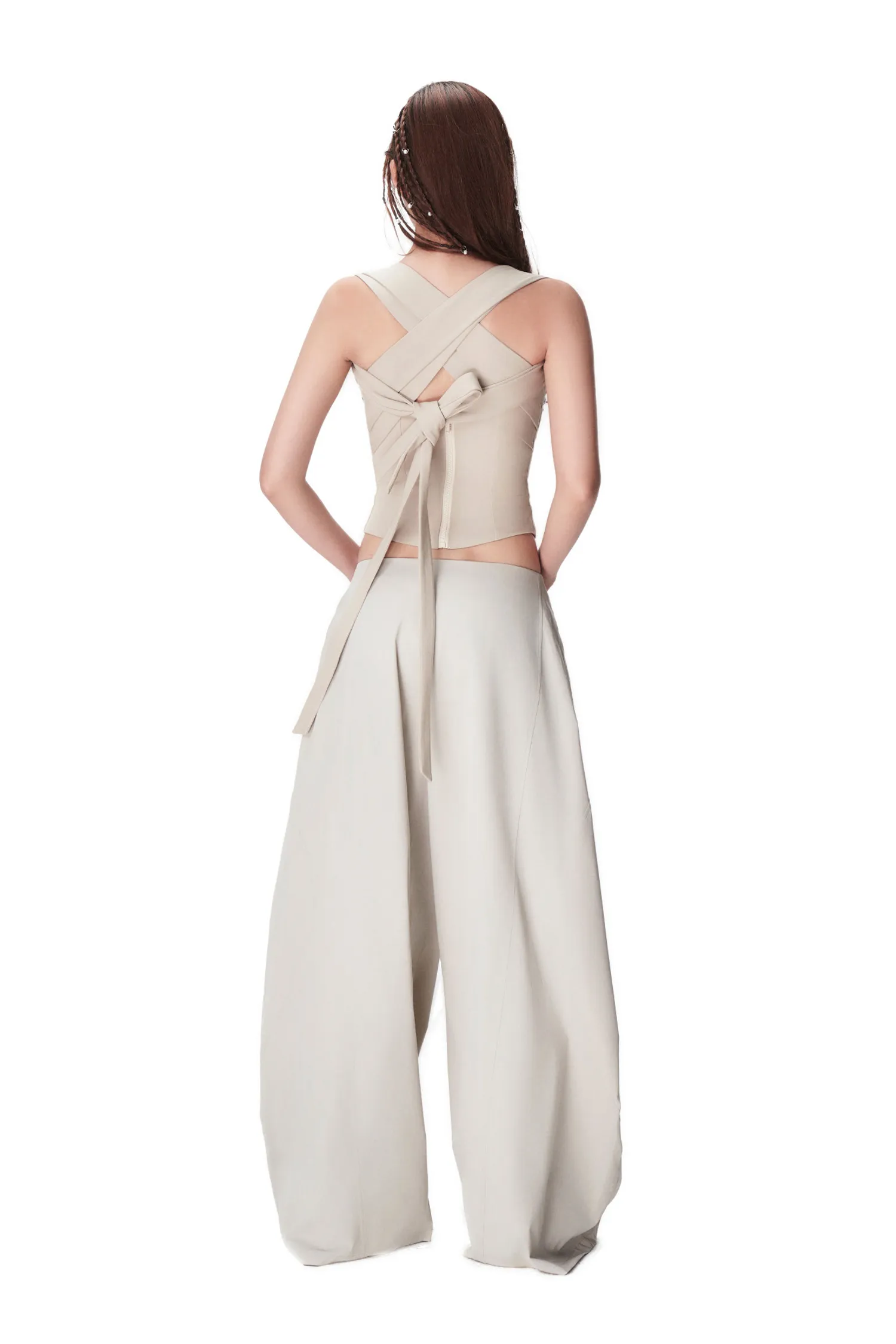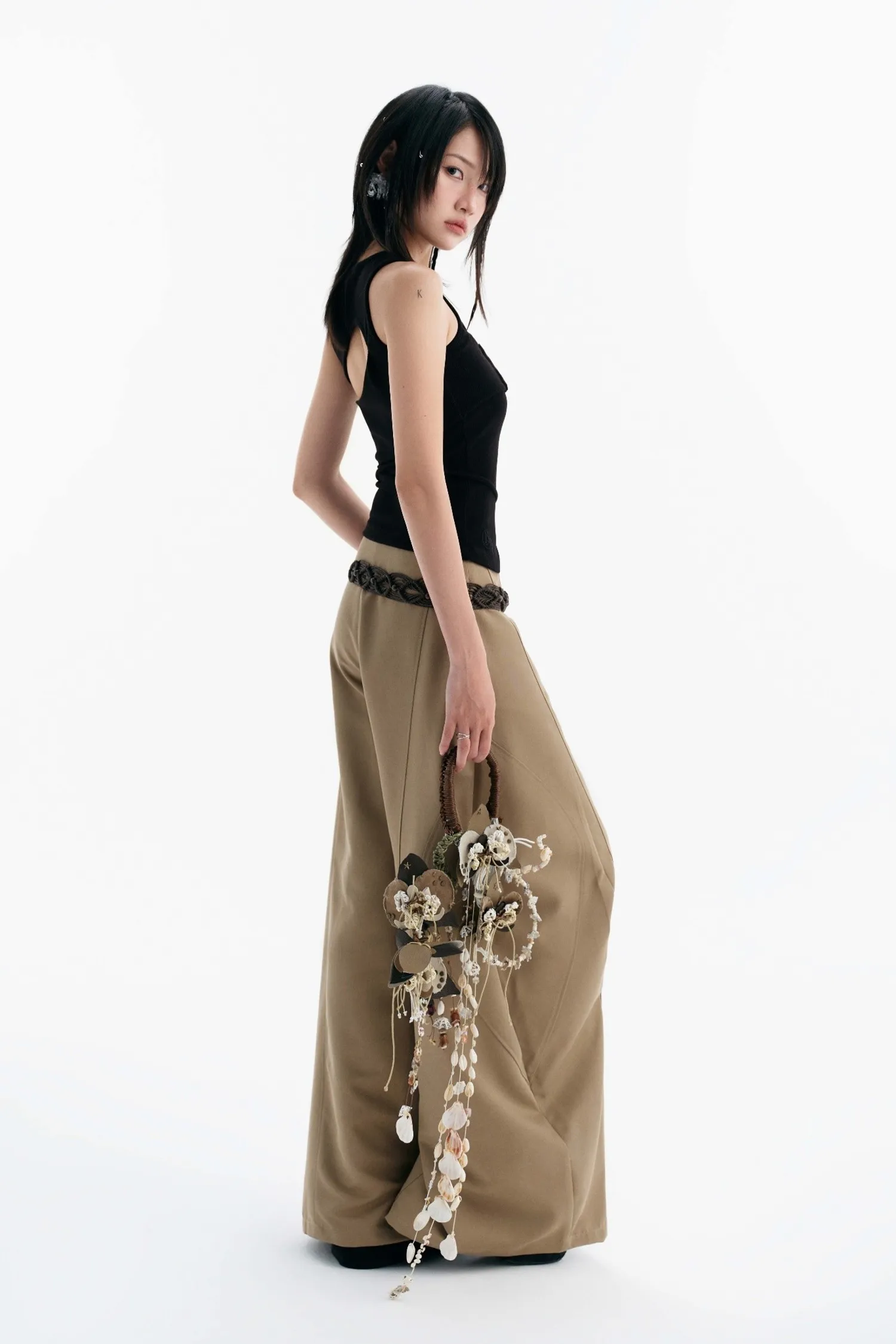 低腰設計的寬版裙褲,褲腳長度可蓋住鞋子