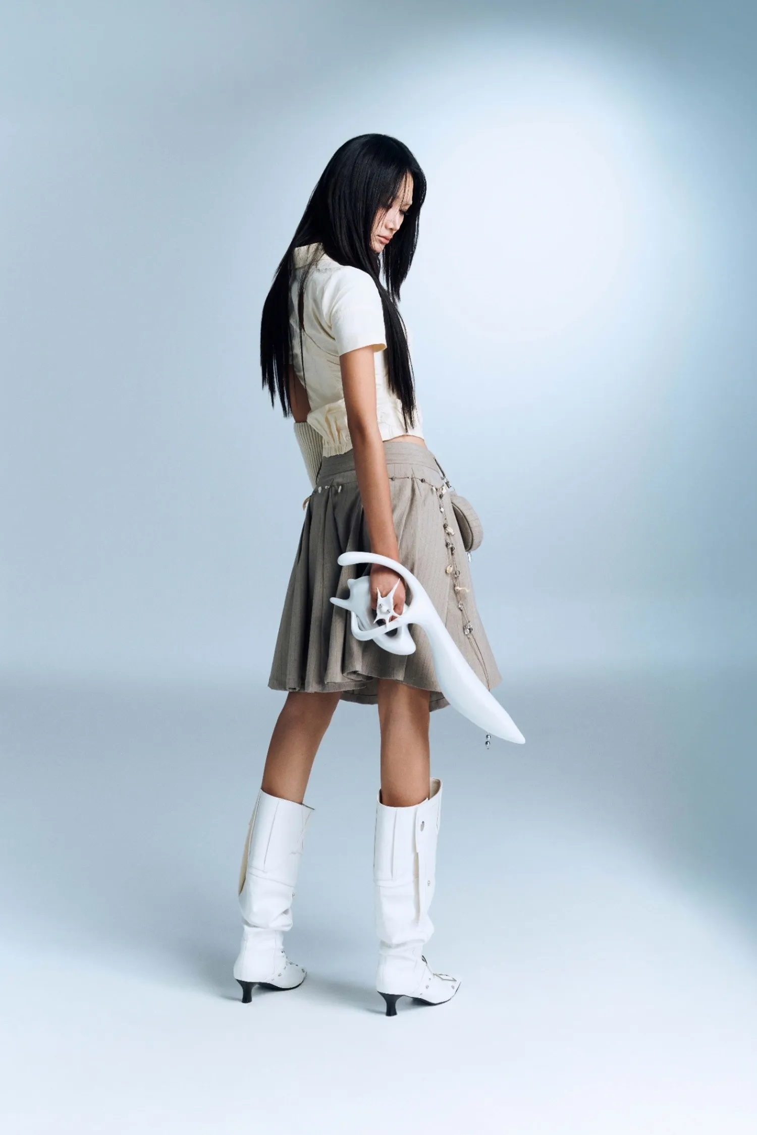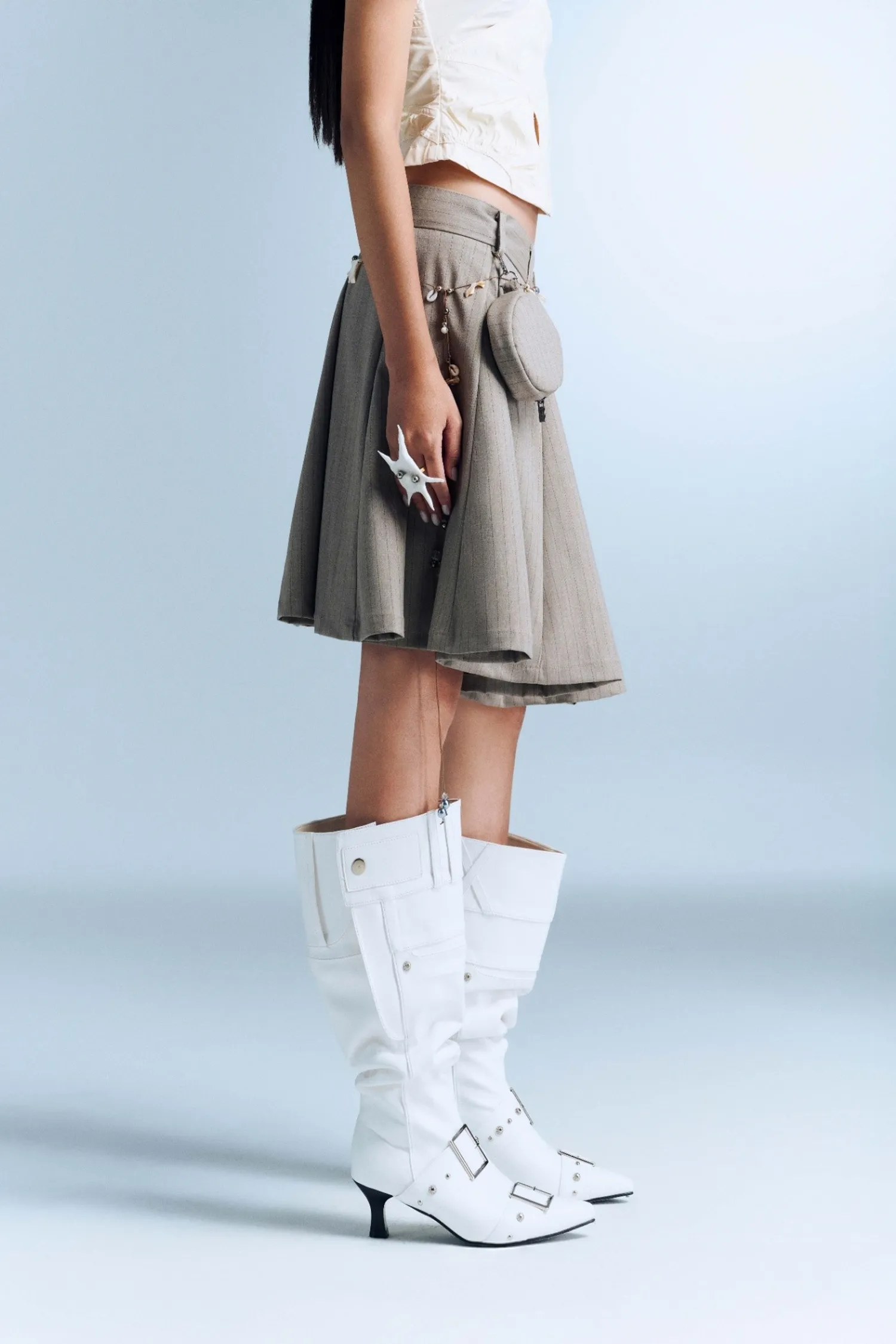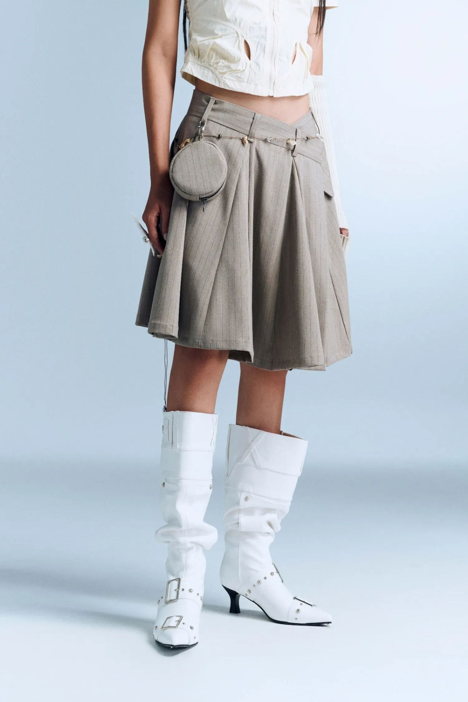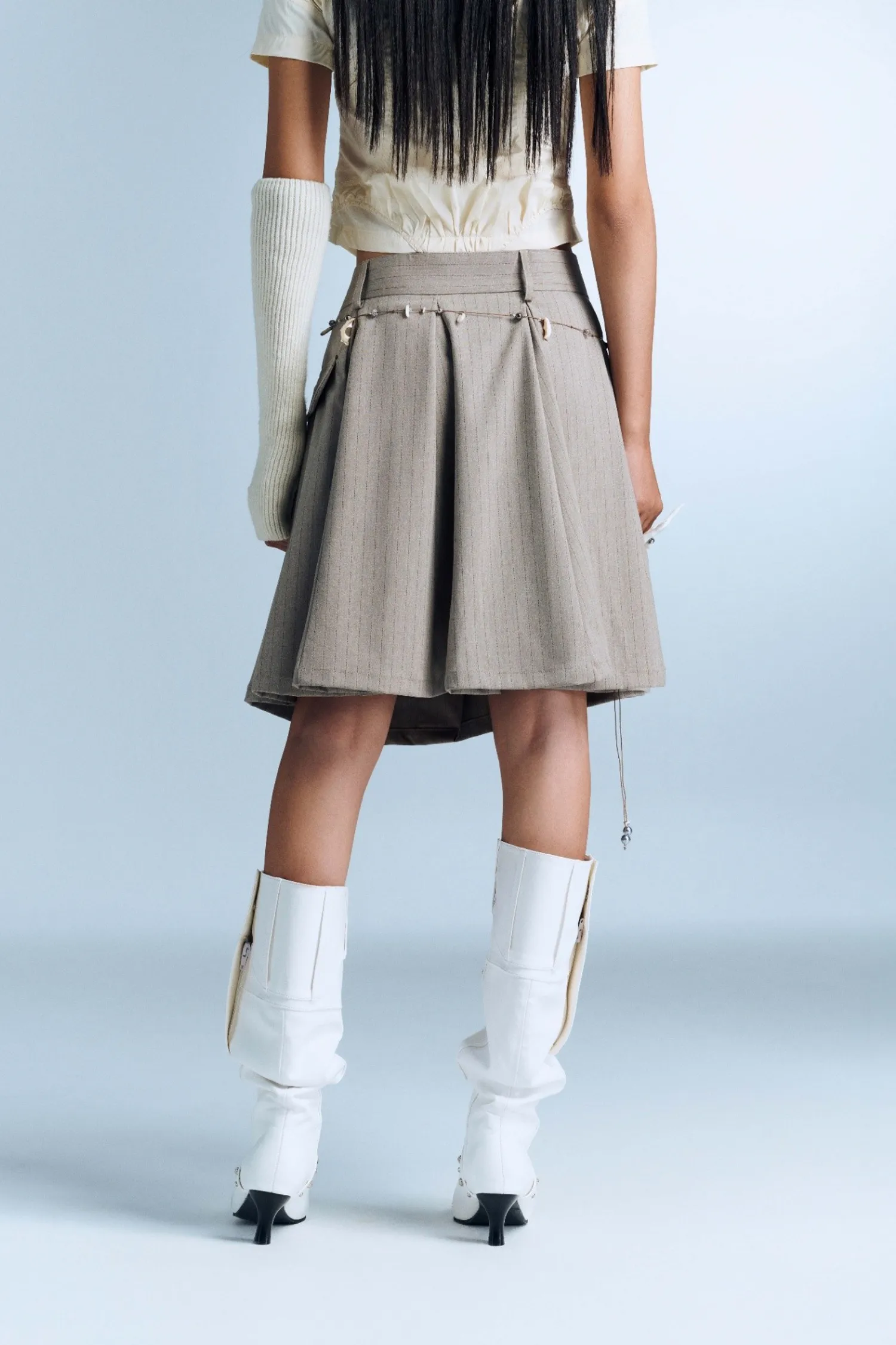 A字褶裹身裙,附圓形工裝口袋。不含安全褲