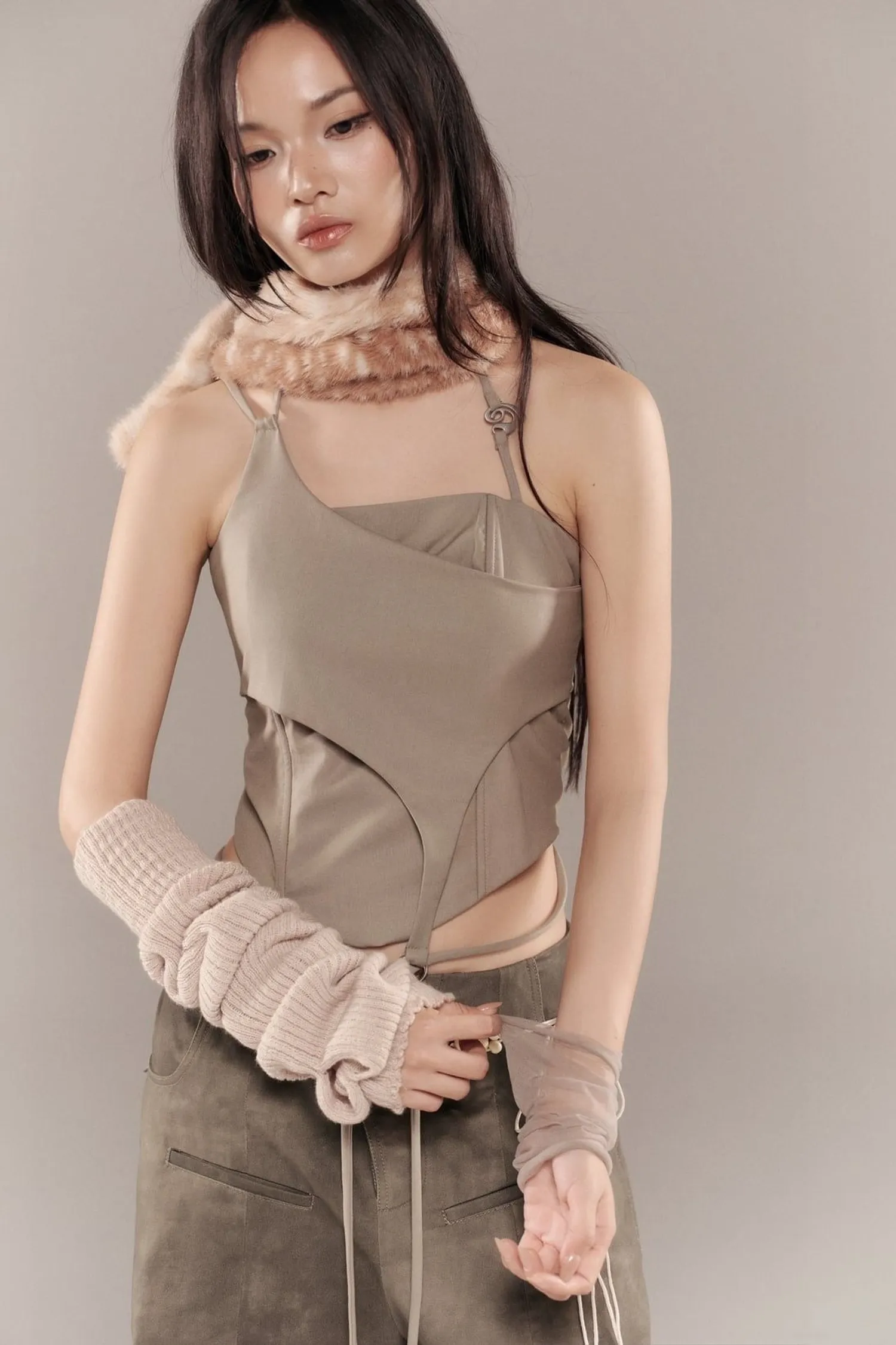 ୨୧⊹ ࣪ ˖ 商品介紹多層束身胸衣上裝。飾有金屬標誌。୨୧⊹ ࣪ ˖ 商品材質天絲/人造絲 ୨୧⊹ ࣪ ˖ 模特資訊 | Model Info 身高 167 cm / 體重 45 kg著 size 1