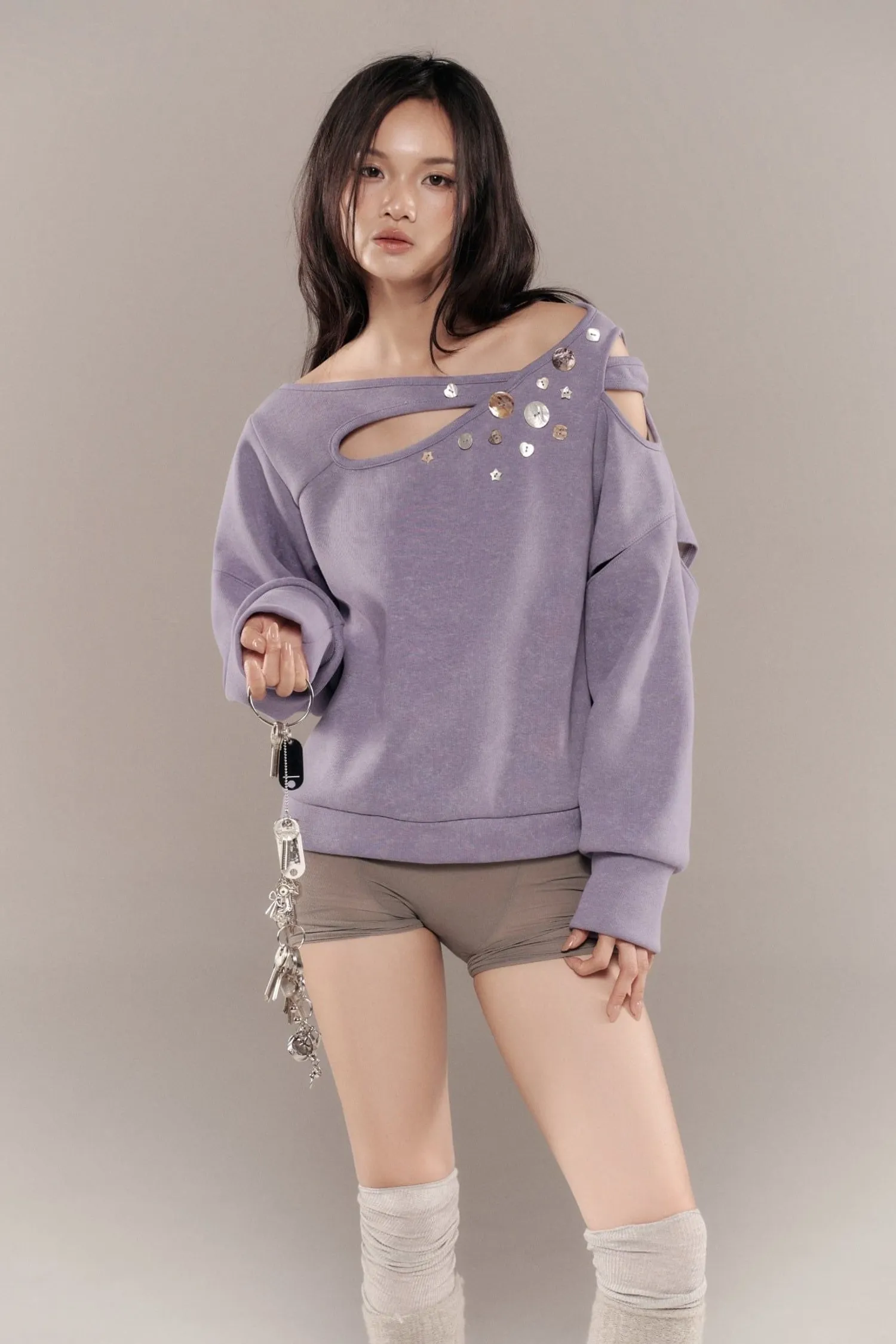 ୨୧⊹ ࣪ ˖ 商品介紹前胸鏤空設計針織上衣,搭配珍珠母貝裝飾鈕扣。୨୧⊹ ࣪ ˖ 商品材質棉/聚酯纖維/氨綸 ୨୧⊹ ࣪ ˖ 模特資訊 | Model Info 身高 167 cm / 體重 45 kg著 size 1