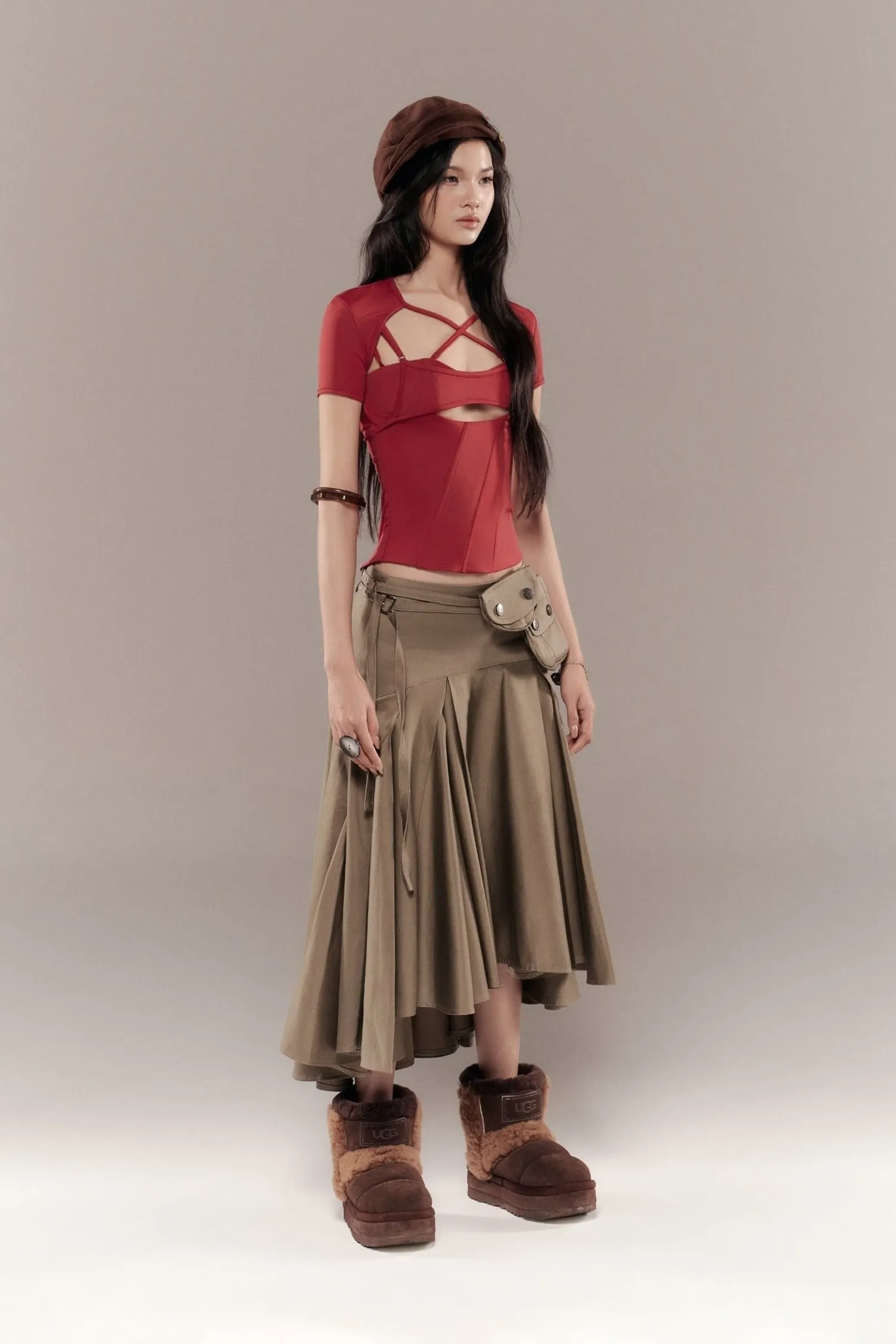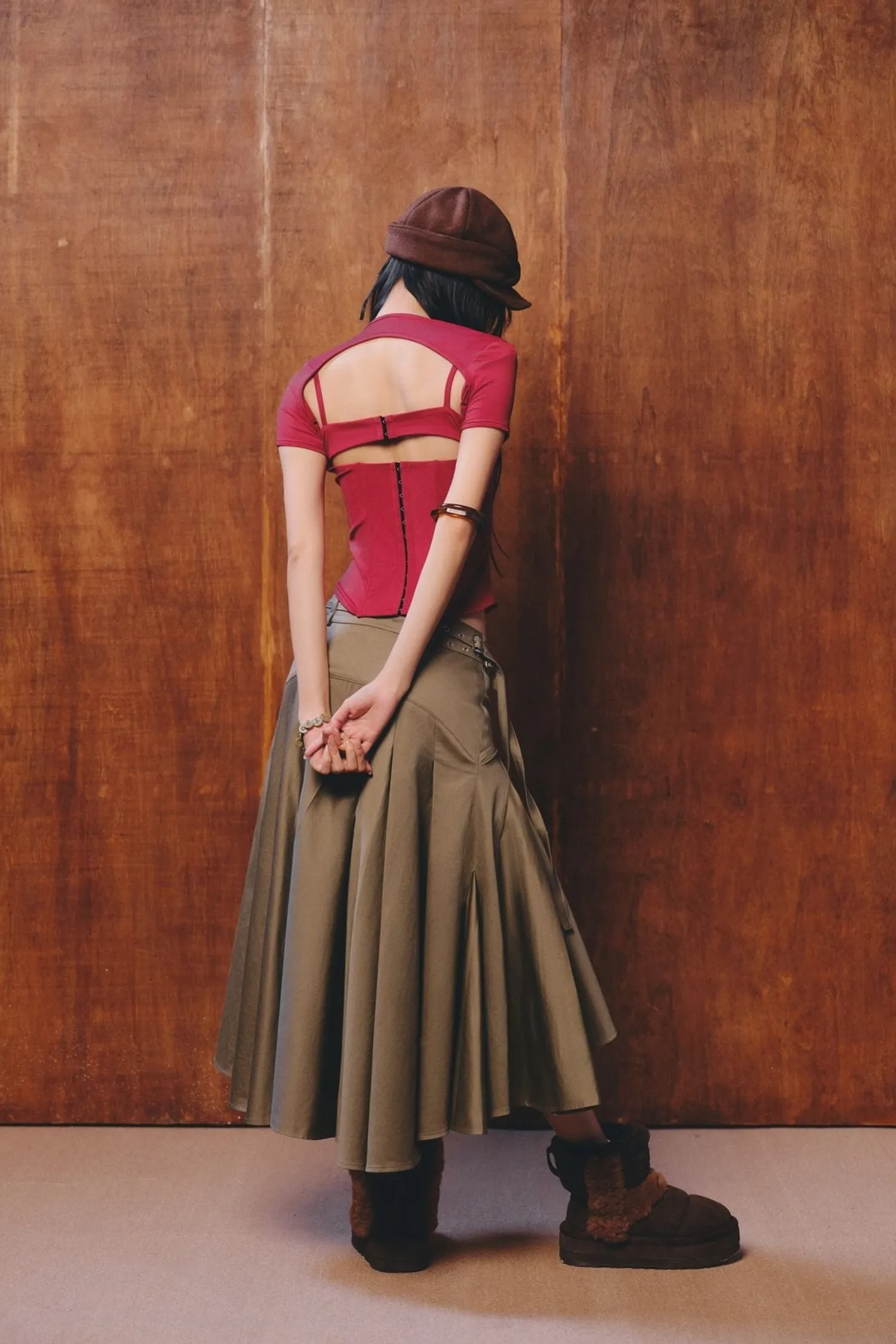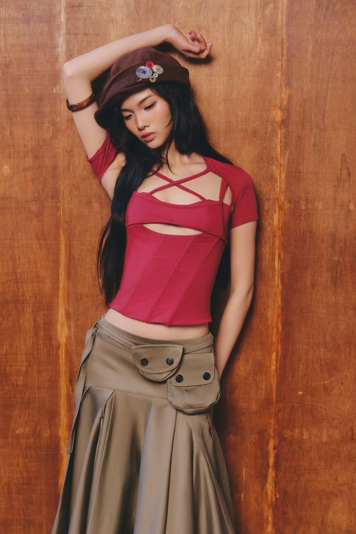 ୨୧⊹ ࣪ ˖ 商品介紹包含一件束身胸衣和一件短袖外套。束身胸衣採用露背設計,正面飾有層疊細節和交叉繩裝飾。背面採用三鉤扣設計。୨୧⊹ ࣪ ˖ 商品材質尼龍/氨綸 ୨୧⊹ ࣪ ˖ 模特資訊 | Model Info 身高 167 cm / 體重 45 kg著 size 1