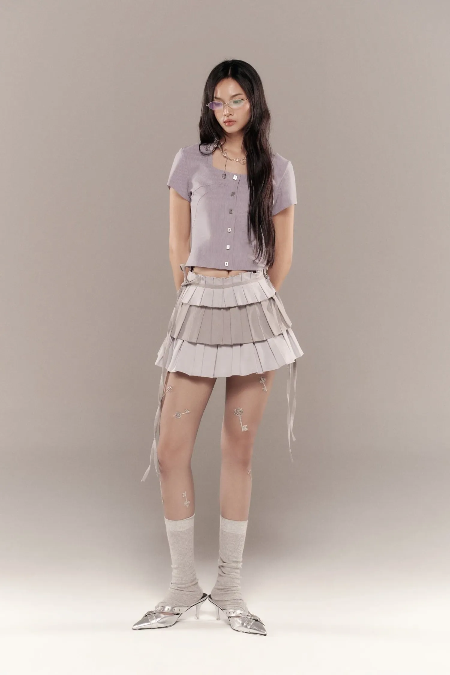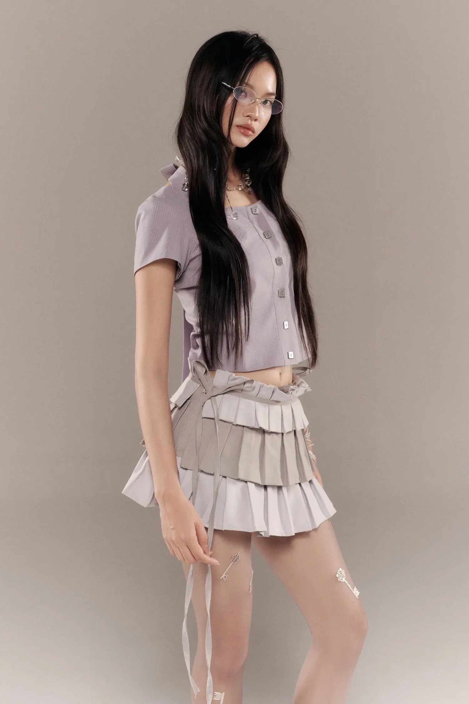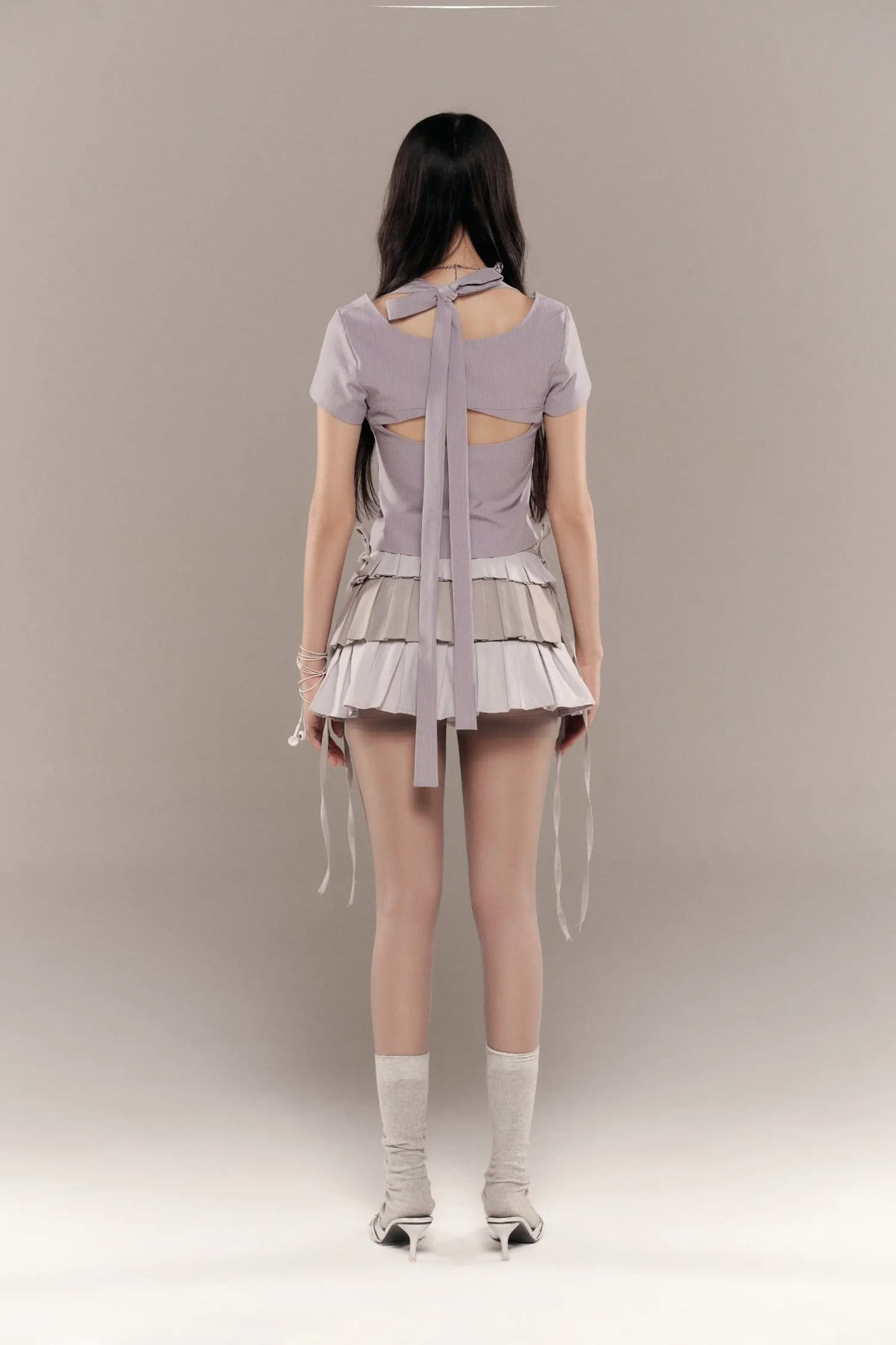 ୨୧⊹ ࣪ ˖ 商品介紹短袖襯衫,後背有鏤空設計。領口有長繫帶,可綁成蝴蝶結。୨୧⊹ ࣪ ˖ 商品材質天絲 ୨୧⊹ ࣪ ˖ 模特資訊 | Model Info 身高 167 cm / 體重 45 kg著 size 1