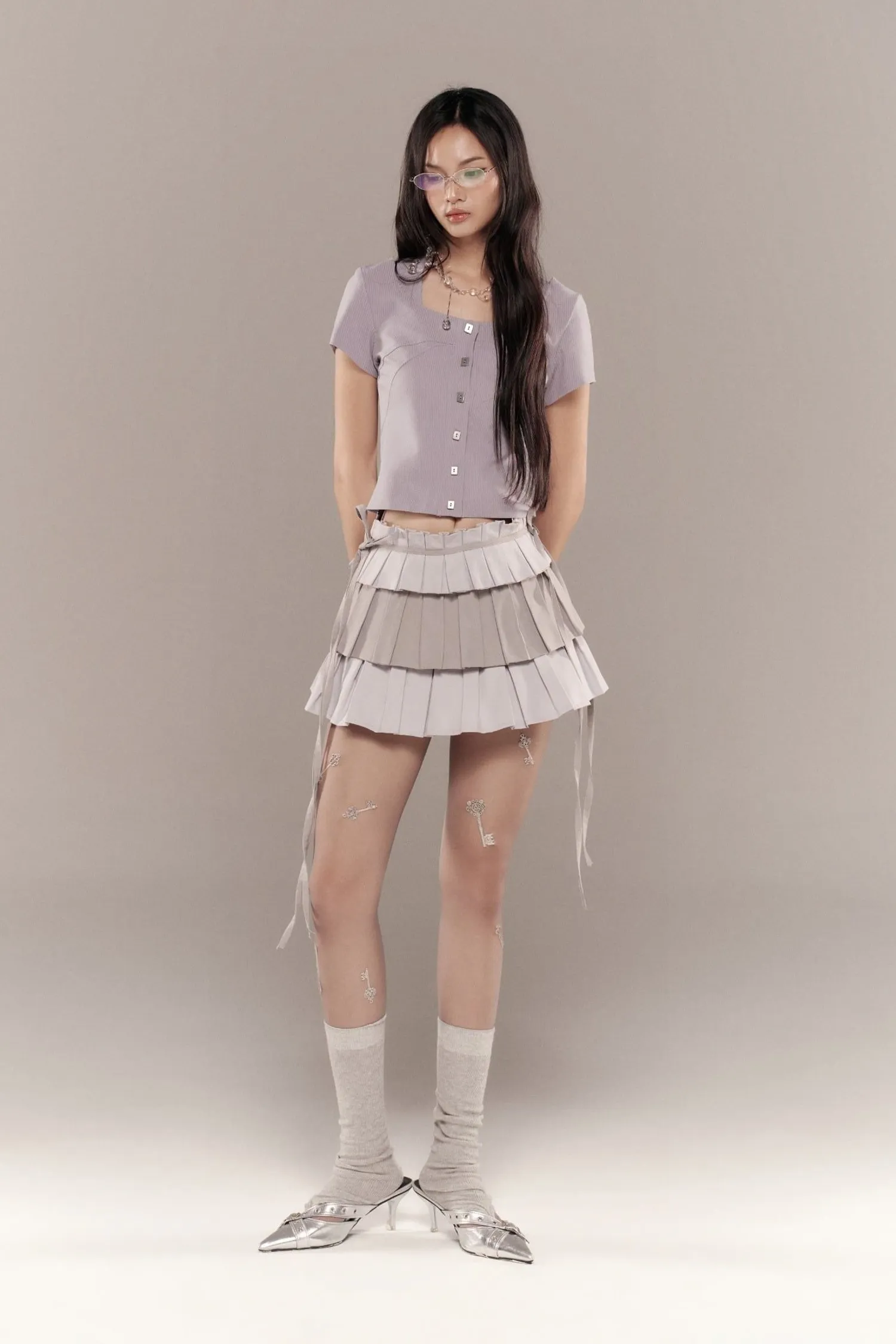 ୨୧⊹ ࣪ ˖ 商品介紹A字型百褶迷你裙。採用多層小褶設計。兩側飾有裝飾繫帶。包含安全短褲。୨୧⊹ ࣪ ˖ 商品材質卡其布 ୨୧⊹ ࣪ ˖ 模特資訊 | Model Info 身高 167 cm / 體重 45 kg著 size 1