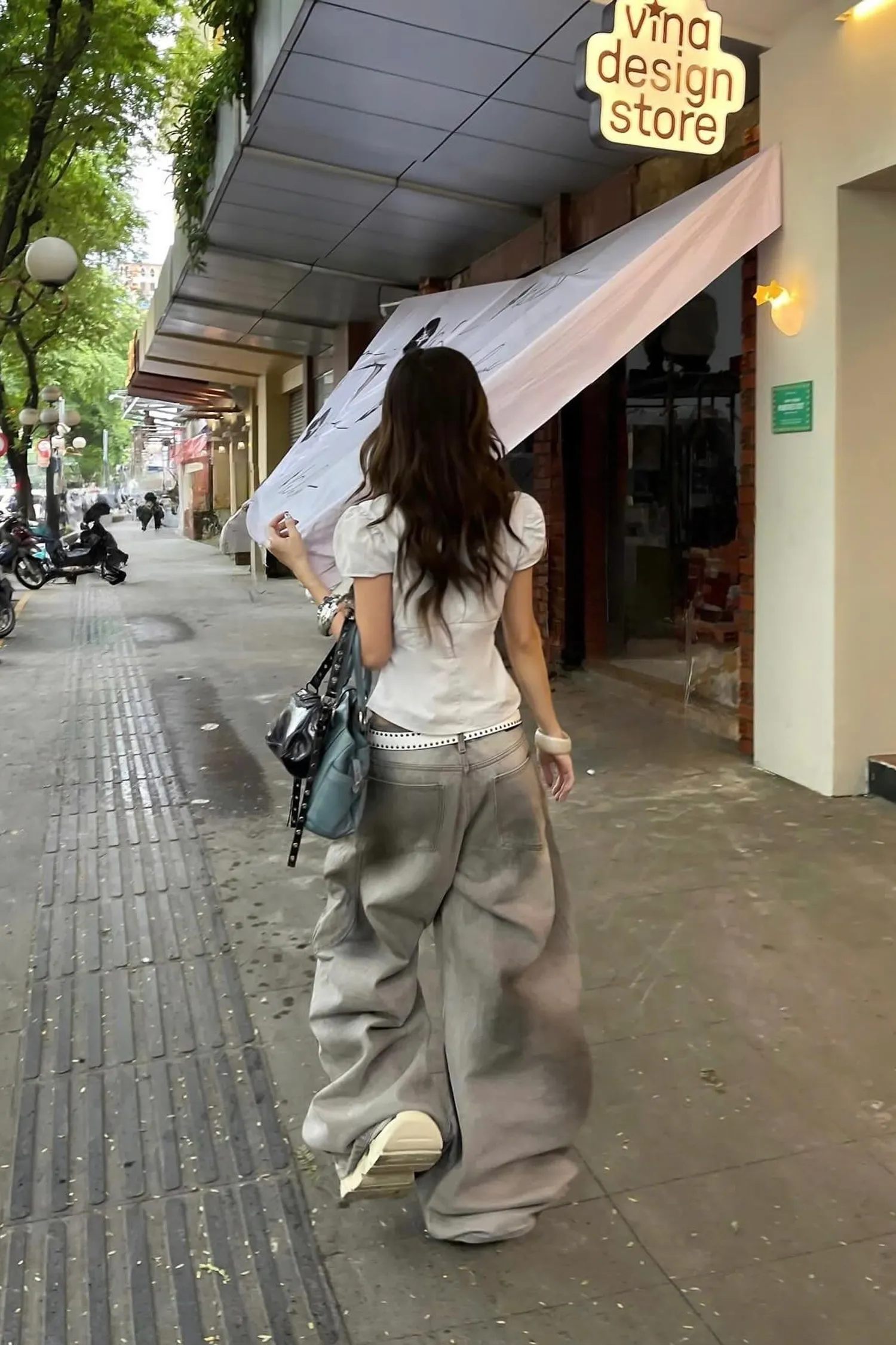 • 直筒牛仔褲,低腰,鞋跟長度