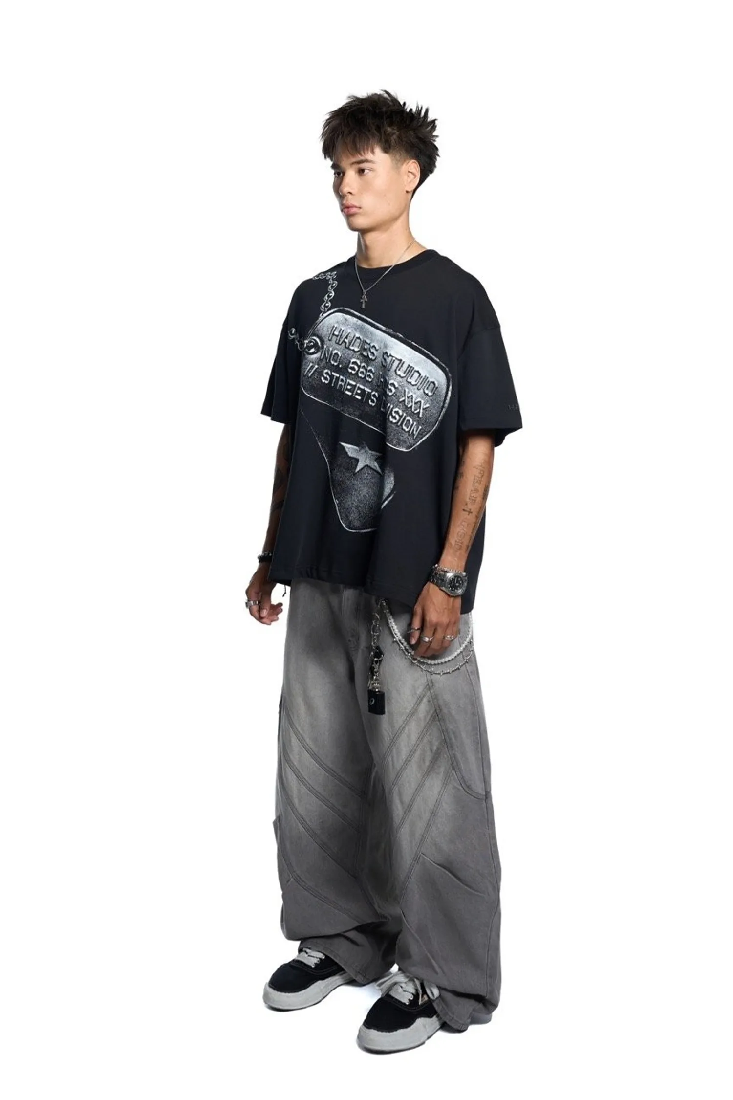 • 褲子背面有 HADES 皮革標誌貼片