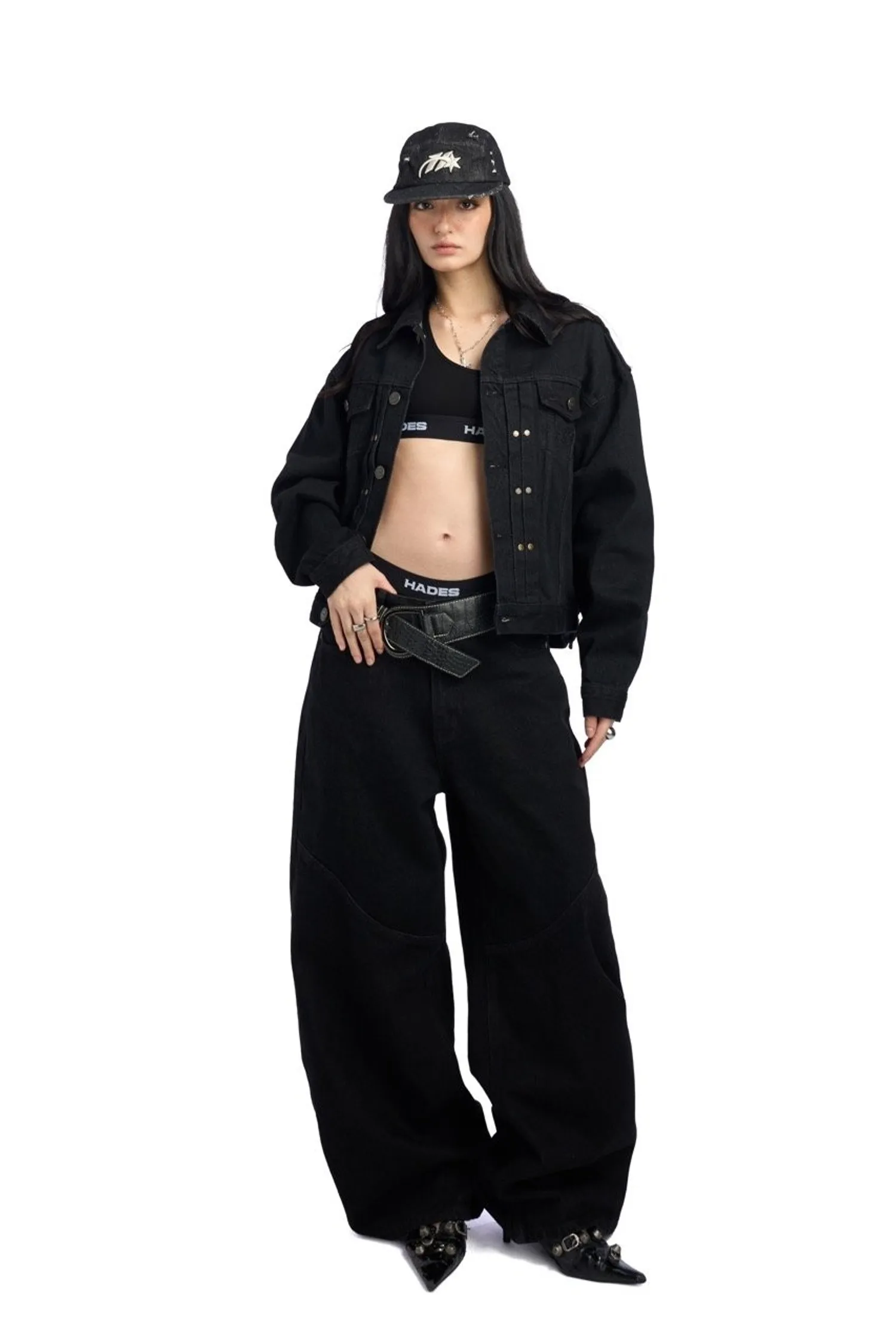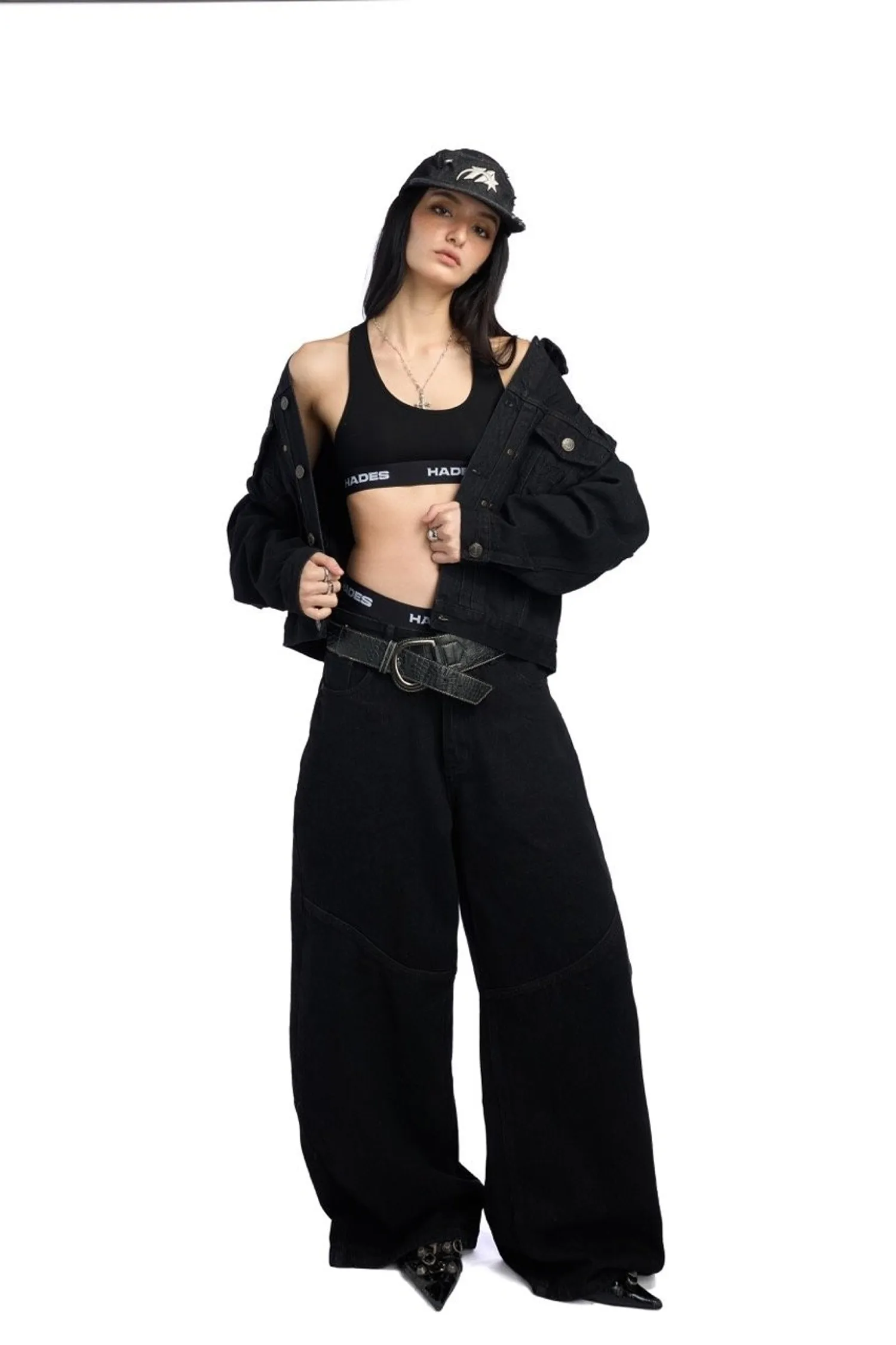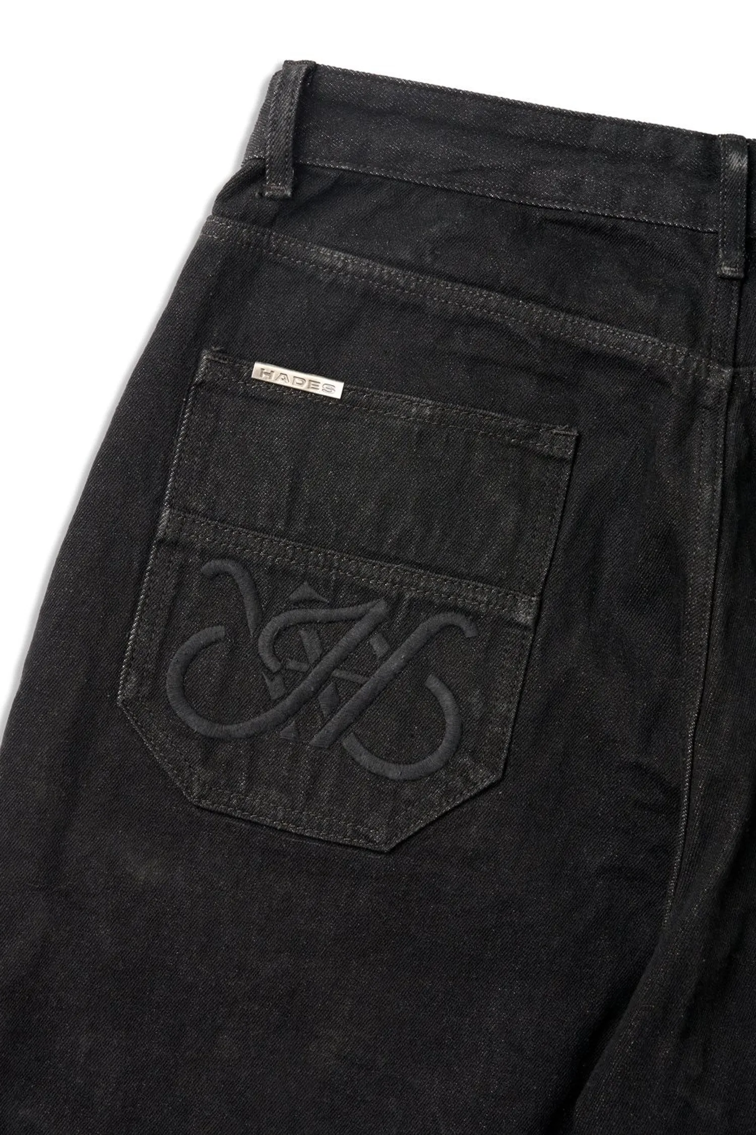 • 褲子背面有霧面黑色皮革貼片,上面刻有 HADES 標誌