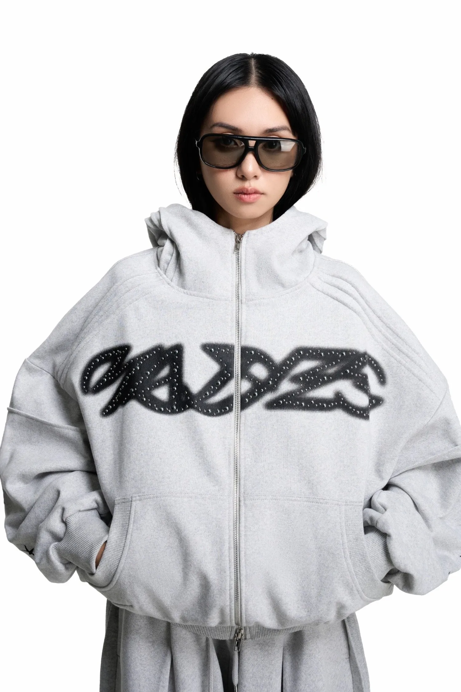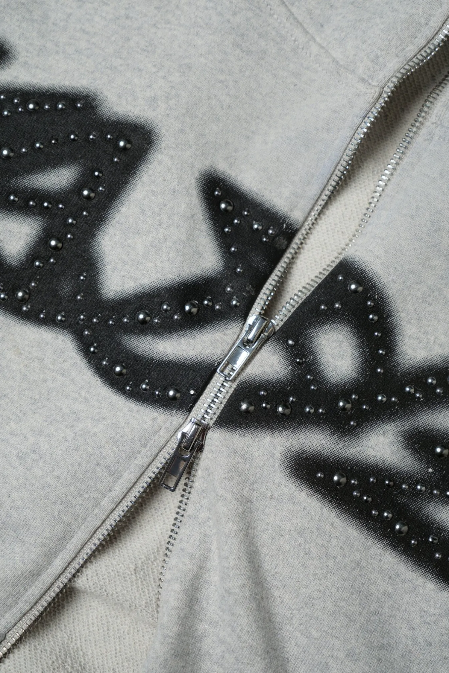 •襯衫正面印有網版印刷和水鑽鑲嵌的字體