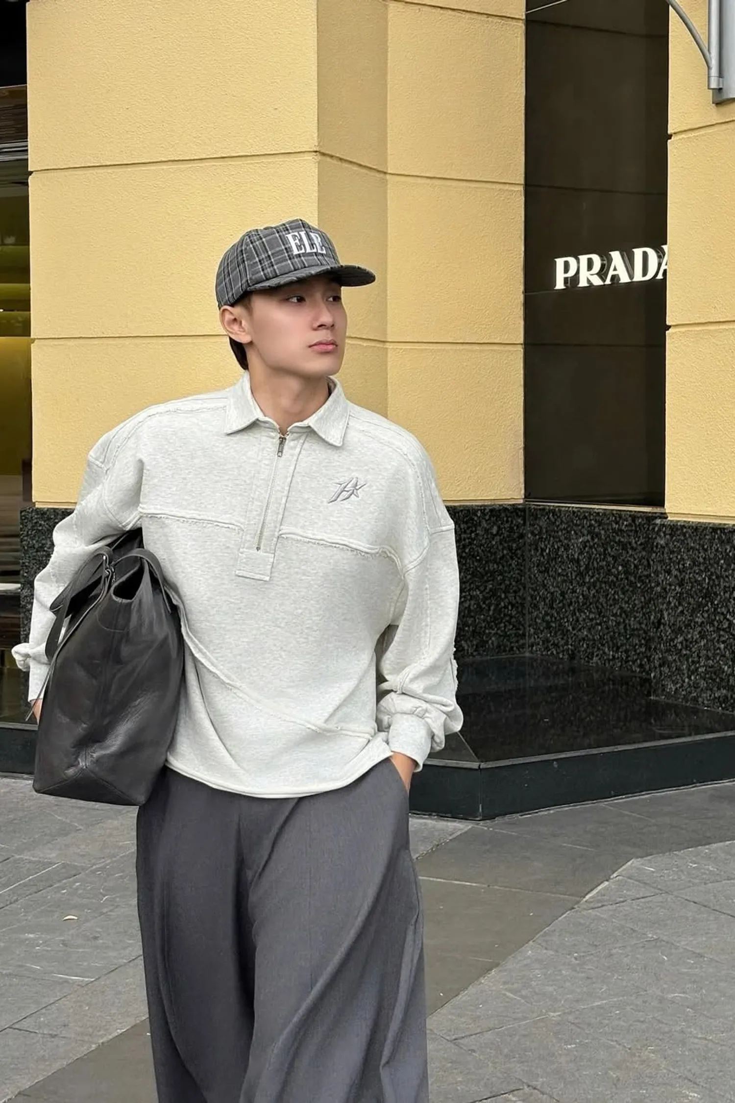 • 斜裁設計搭配壓紋縫線,營造出醒目的效果