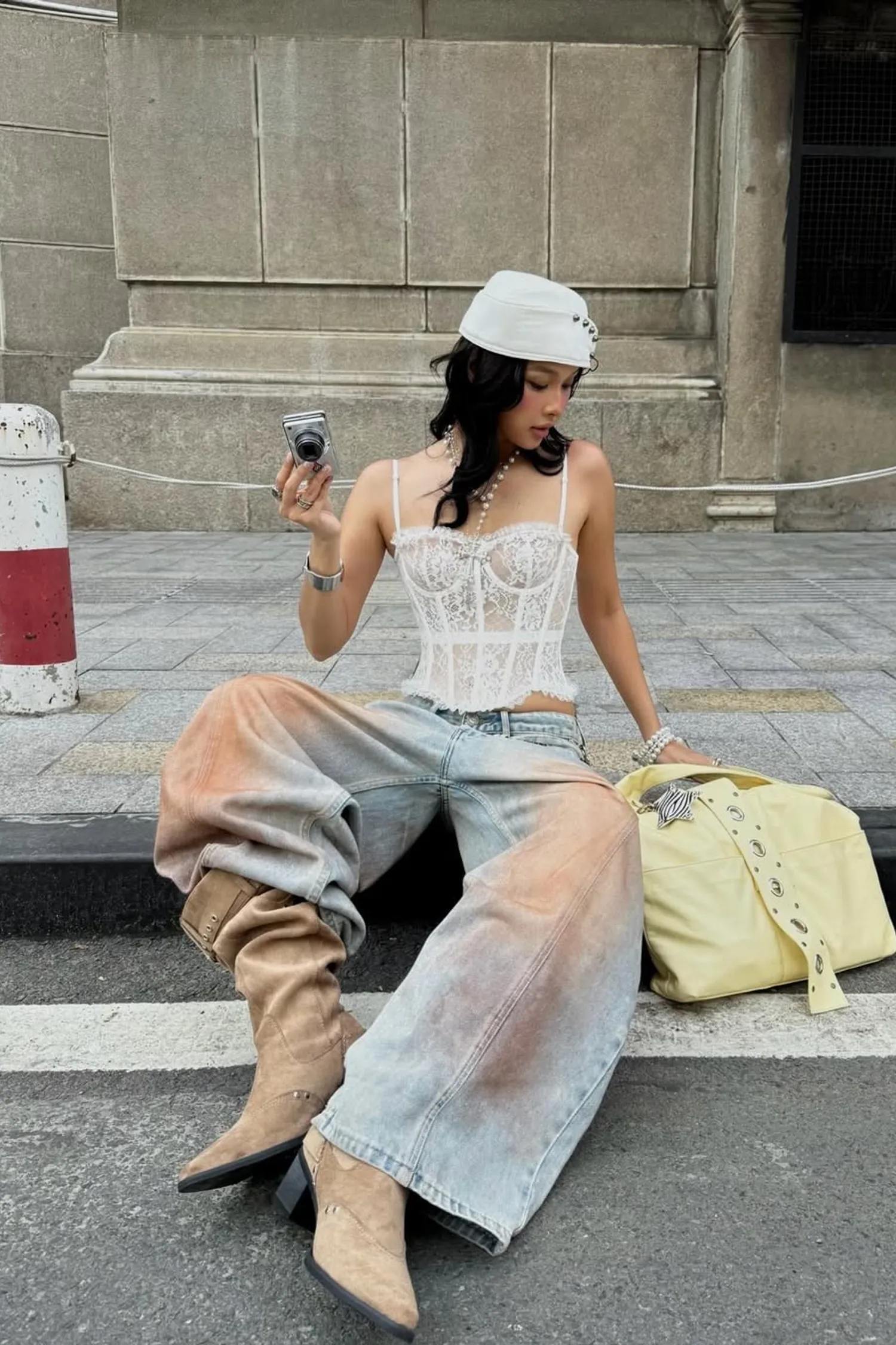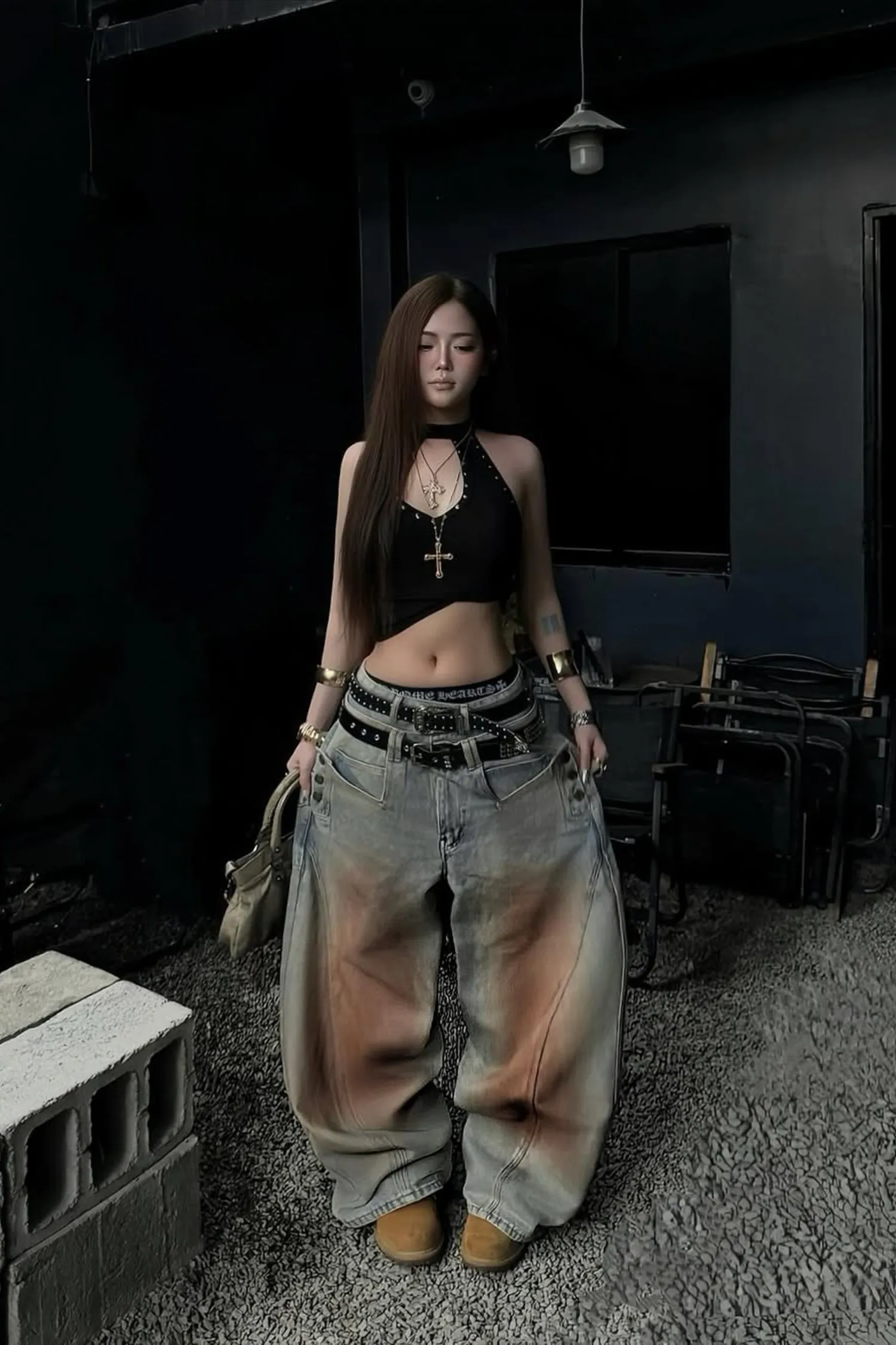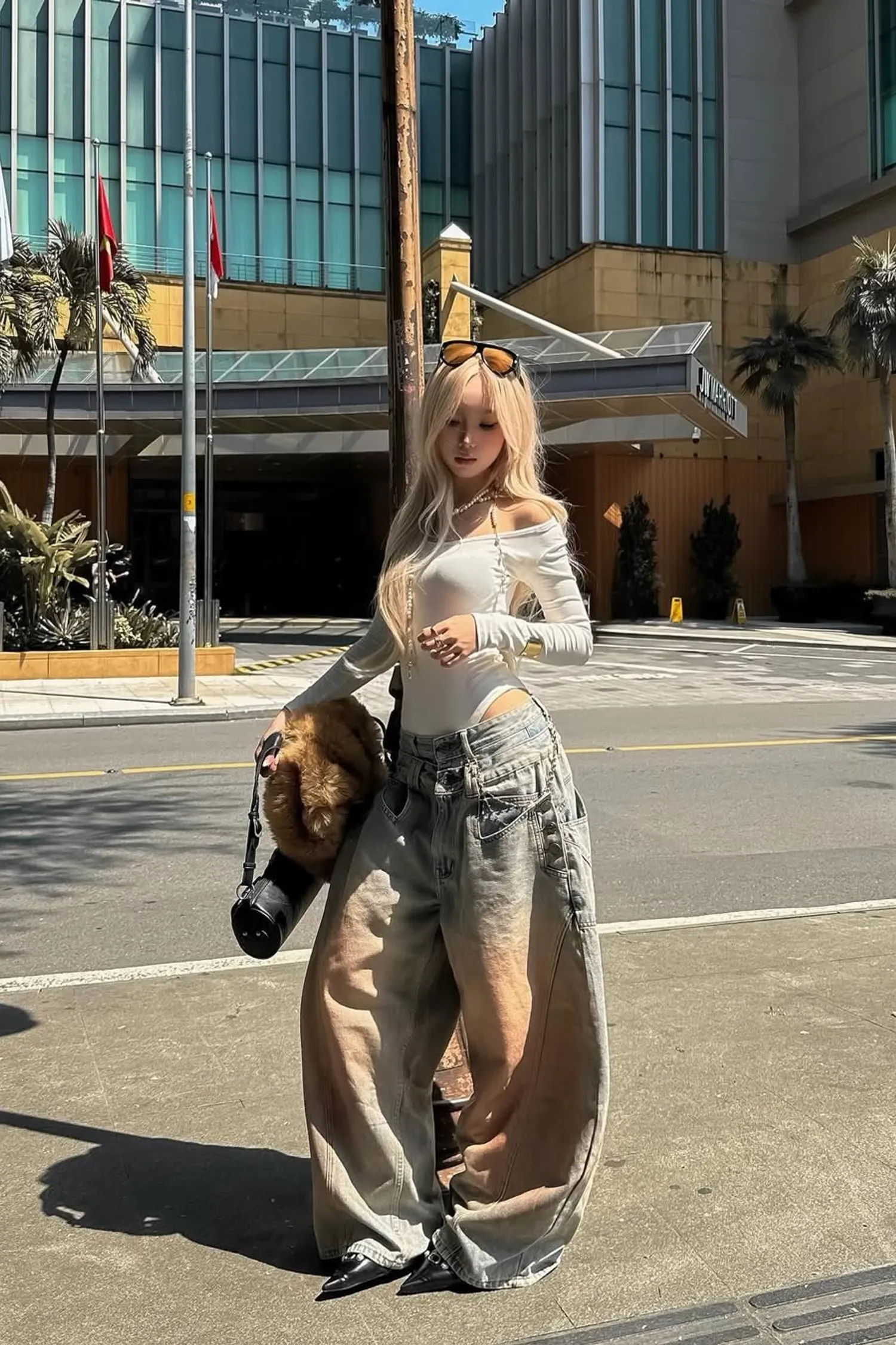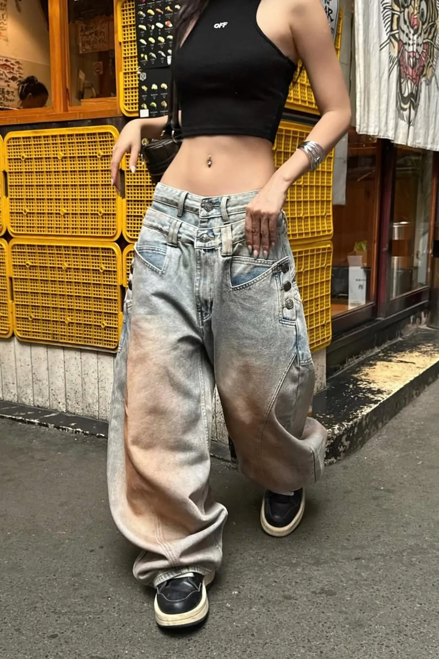 • 闊腿牛仔褲