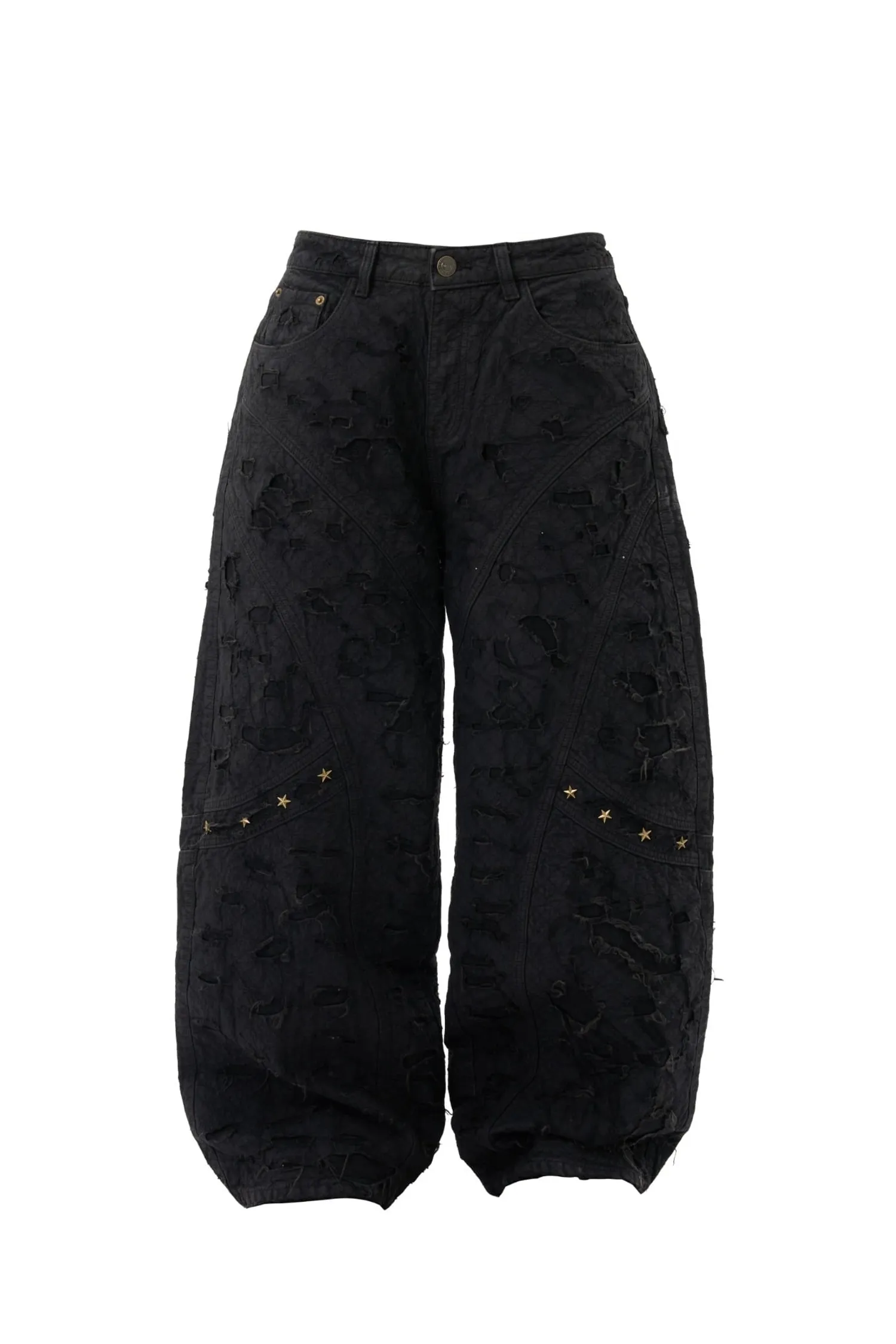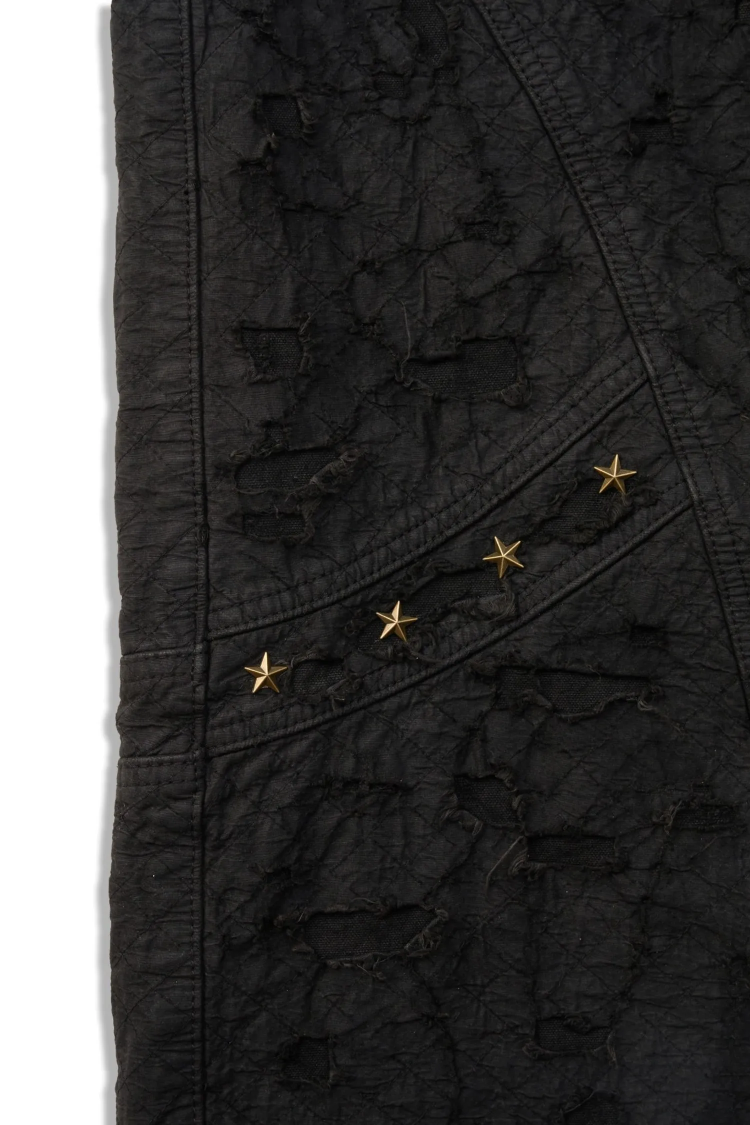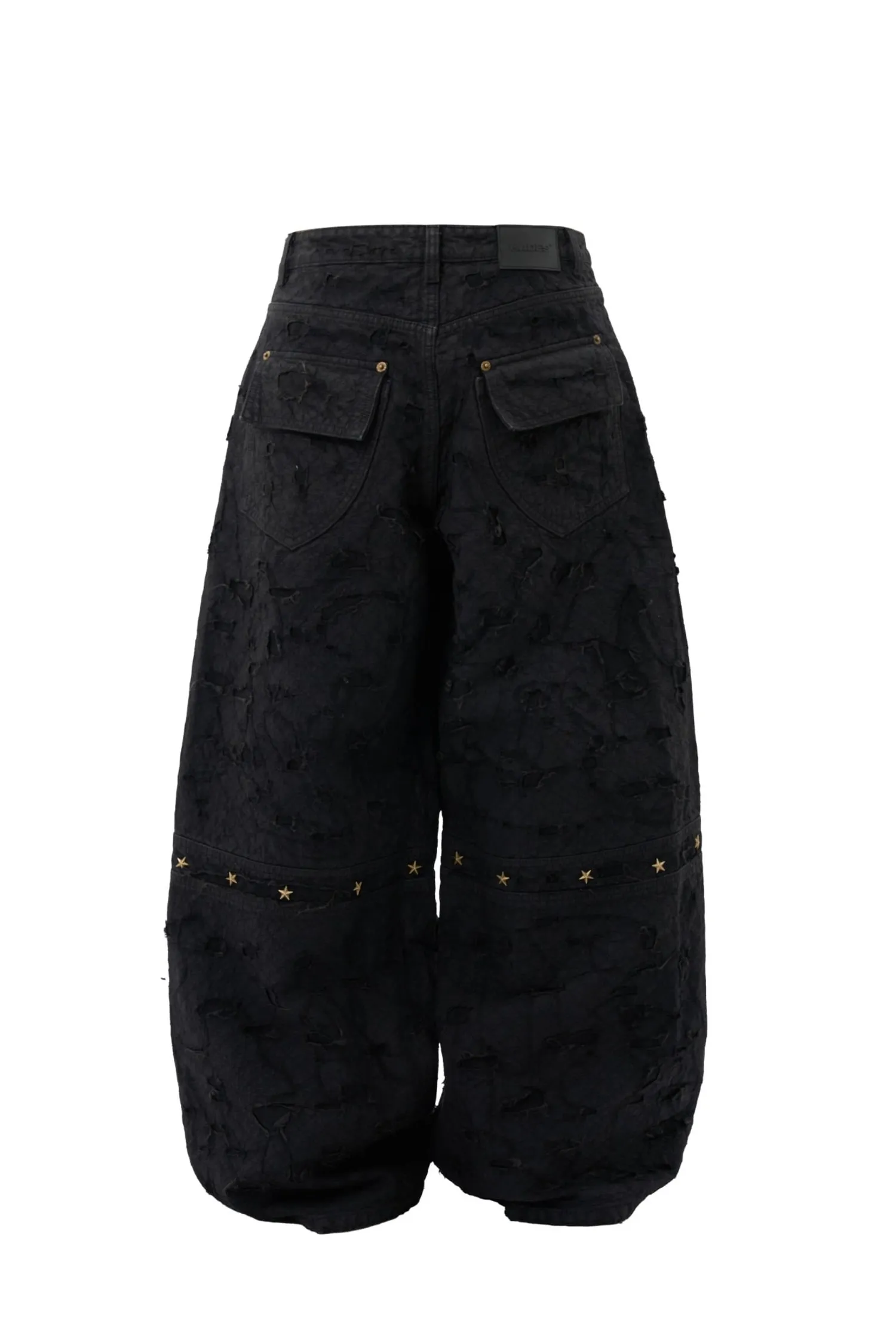• 褲管周圍飾有小巧的金屬星星鉚釘