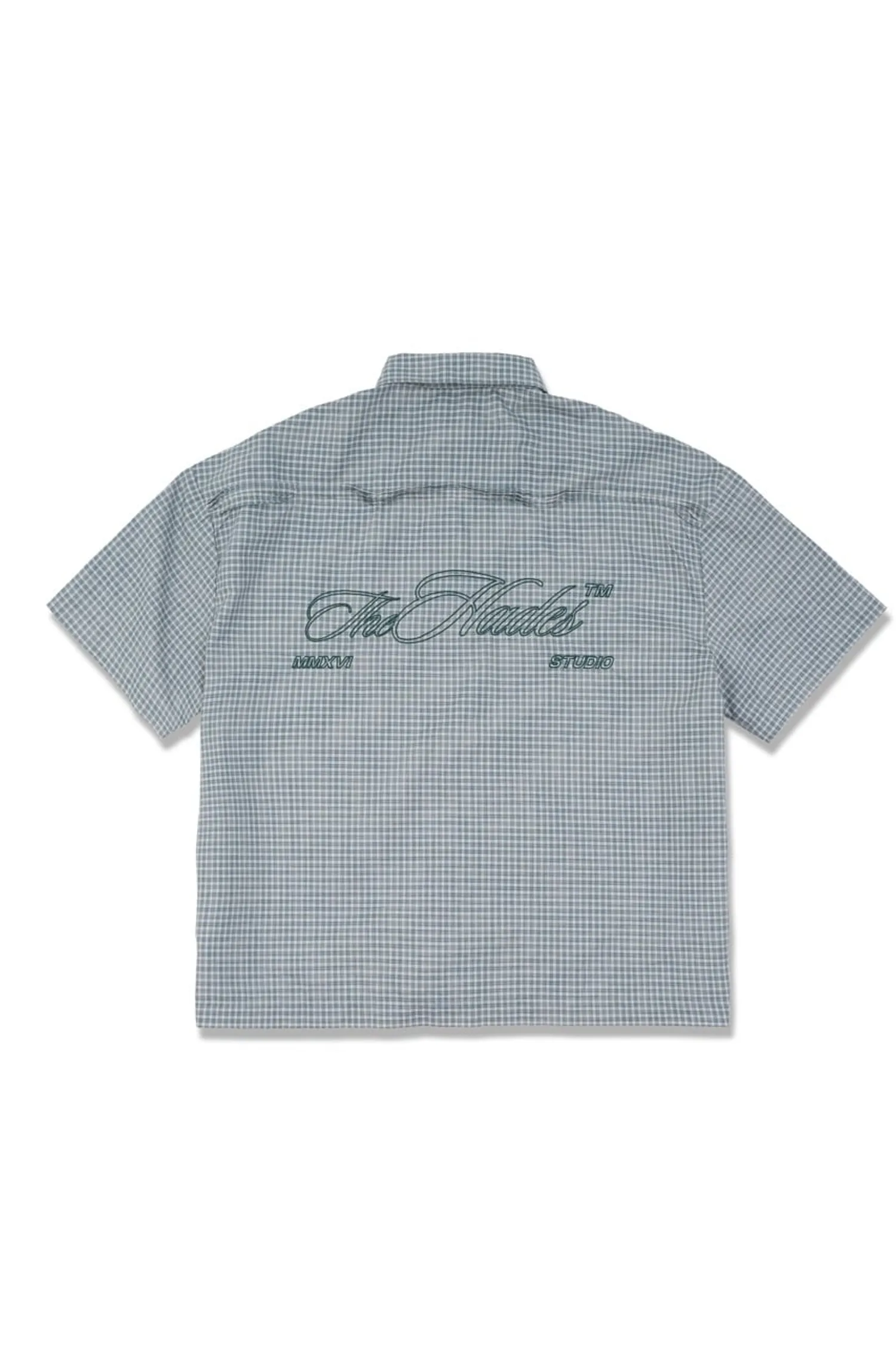 • 男女通用短袖格子襯衫