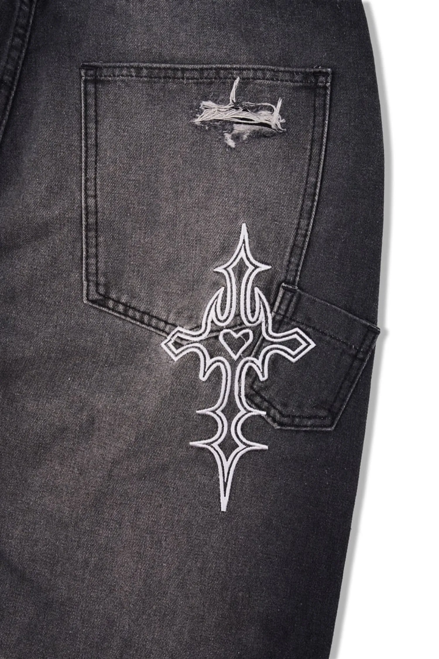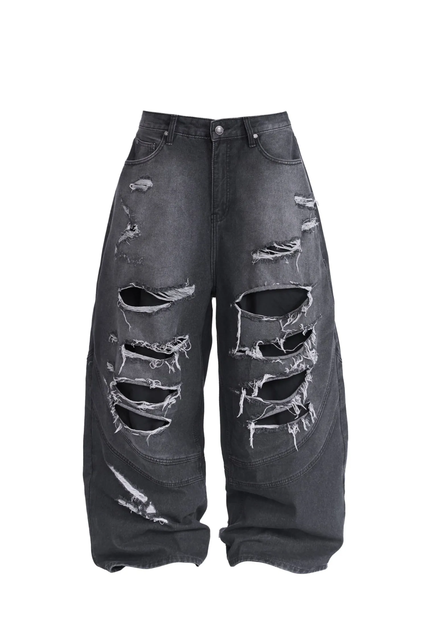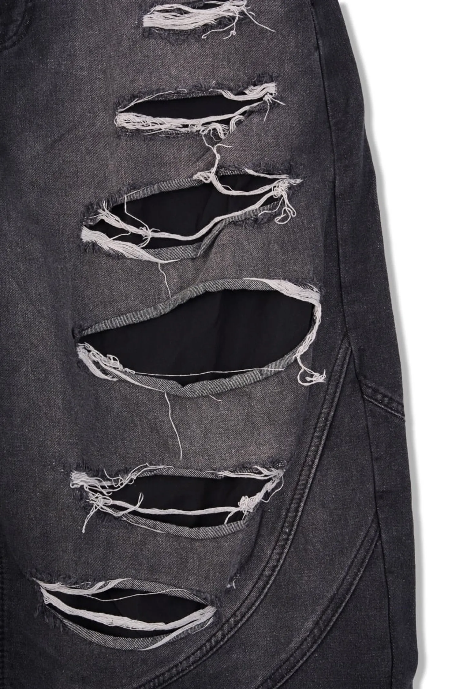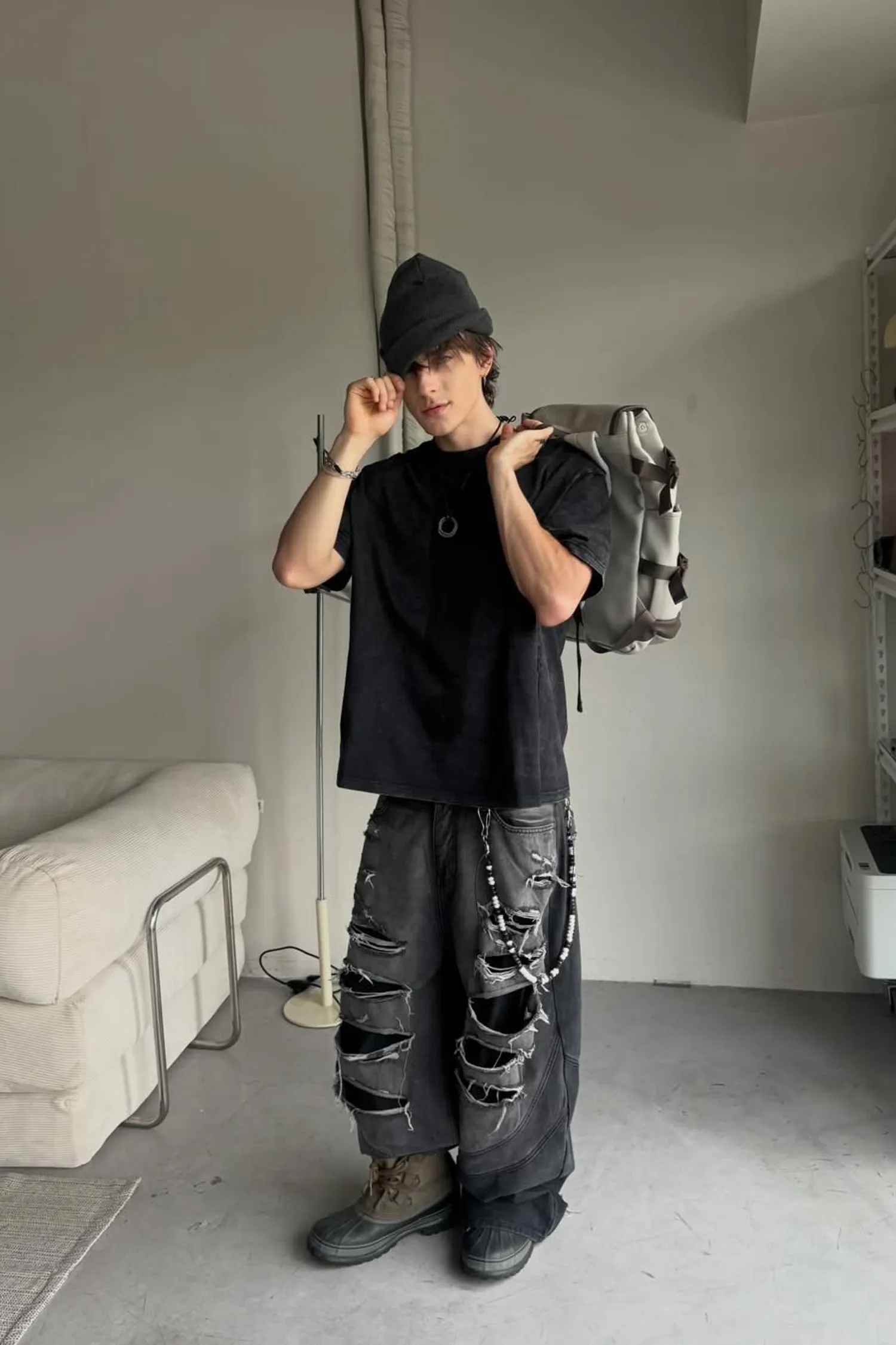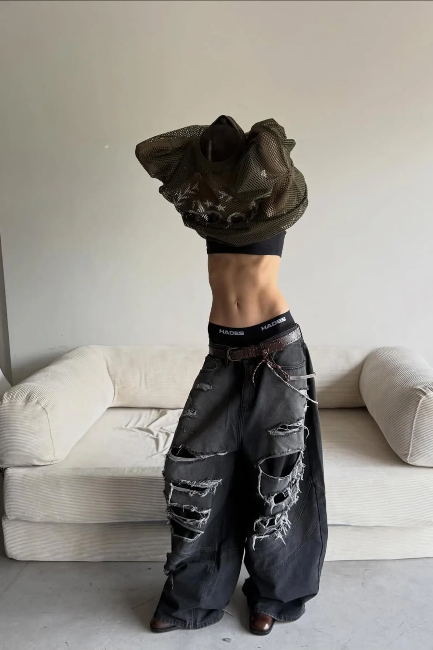 • 該設計以大面積撕裂部分和粗糙的磨損表面為特色。