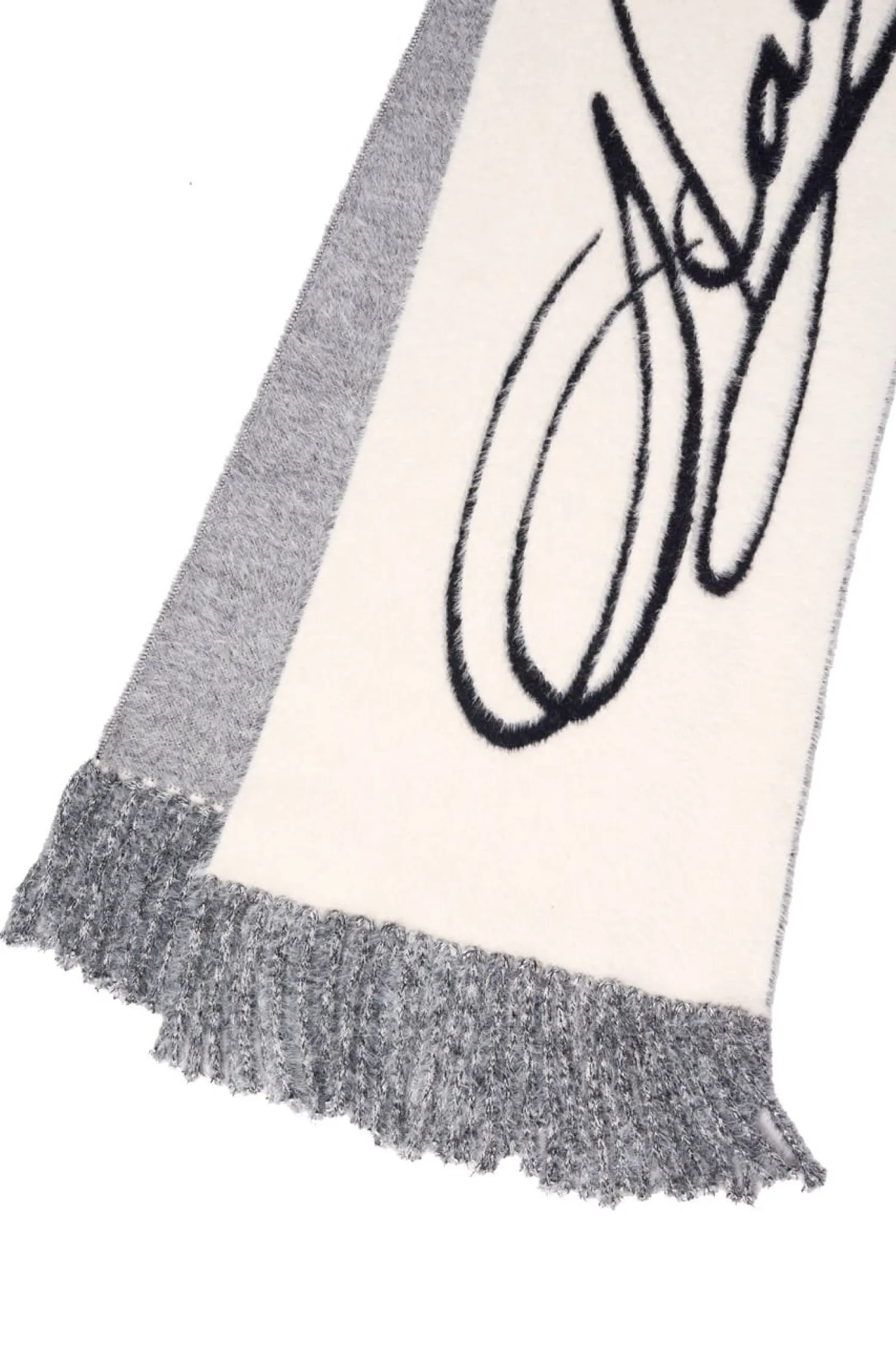 • 圍巾全身飾有大型編織圖案