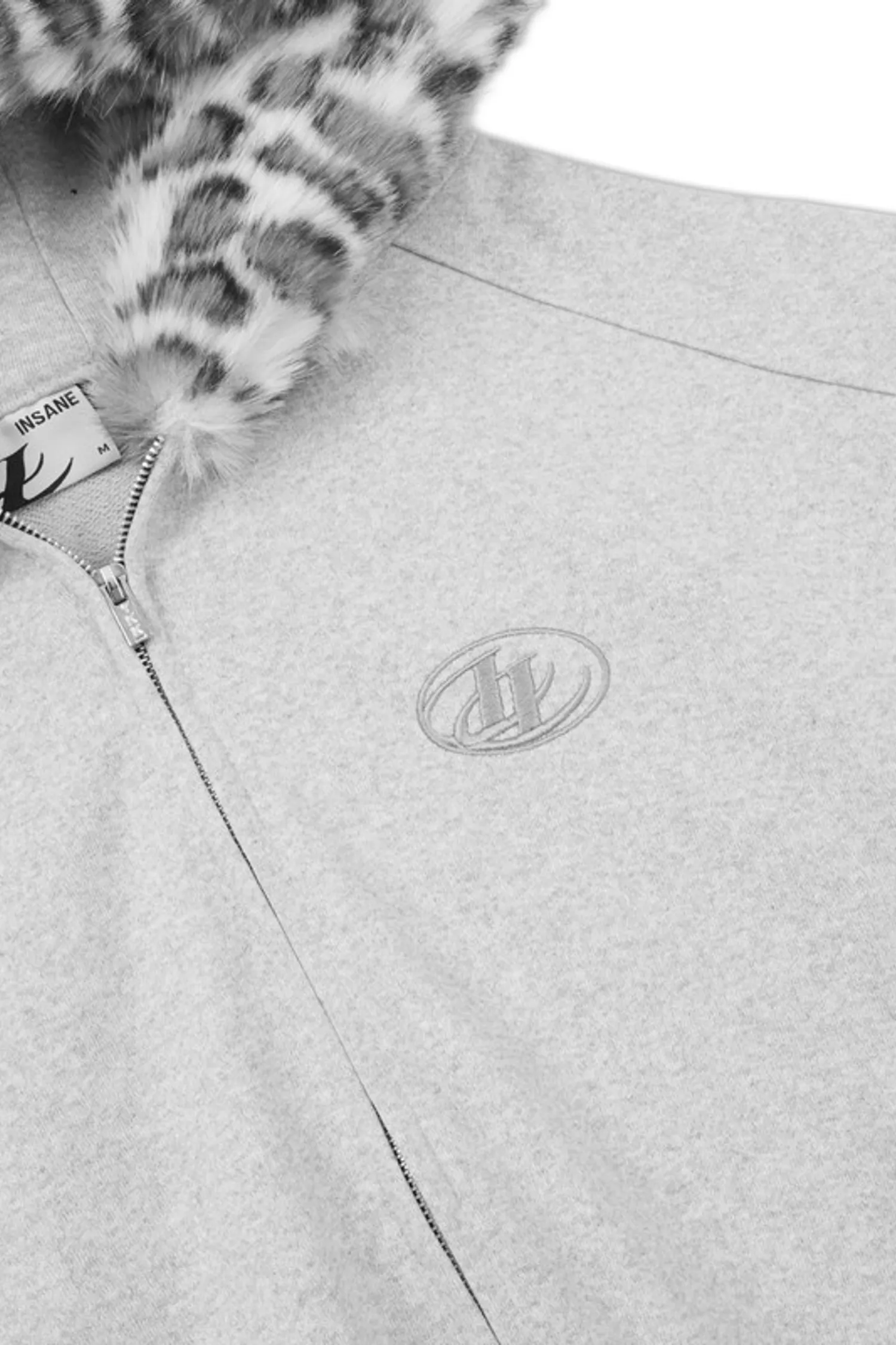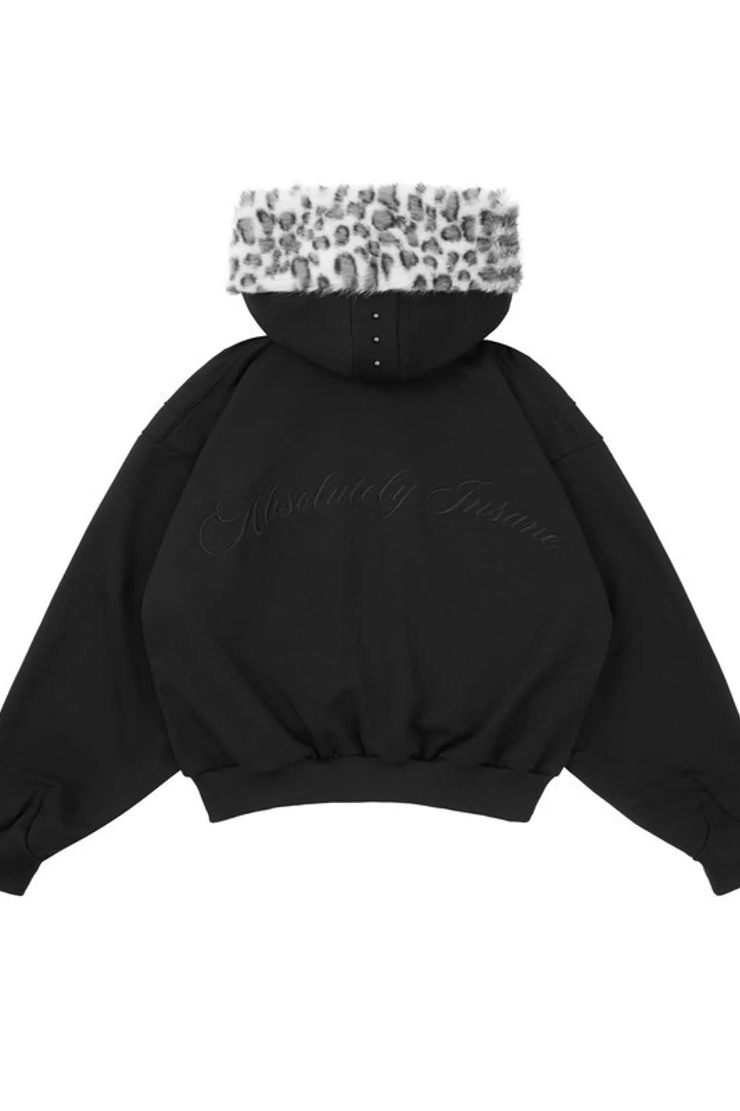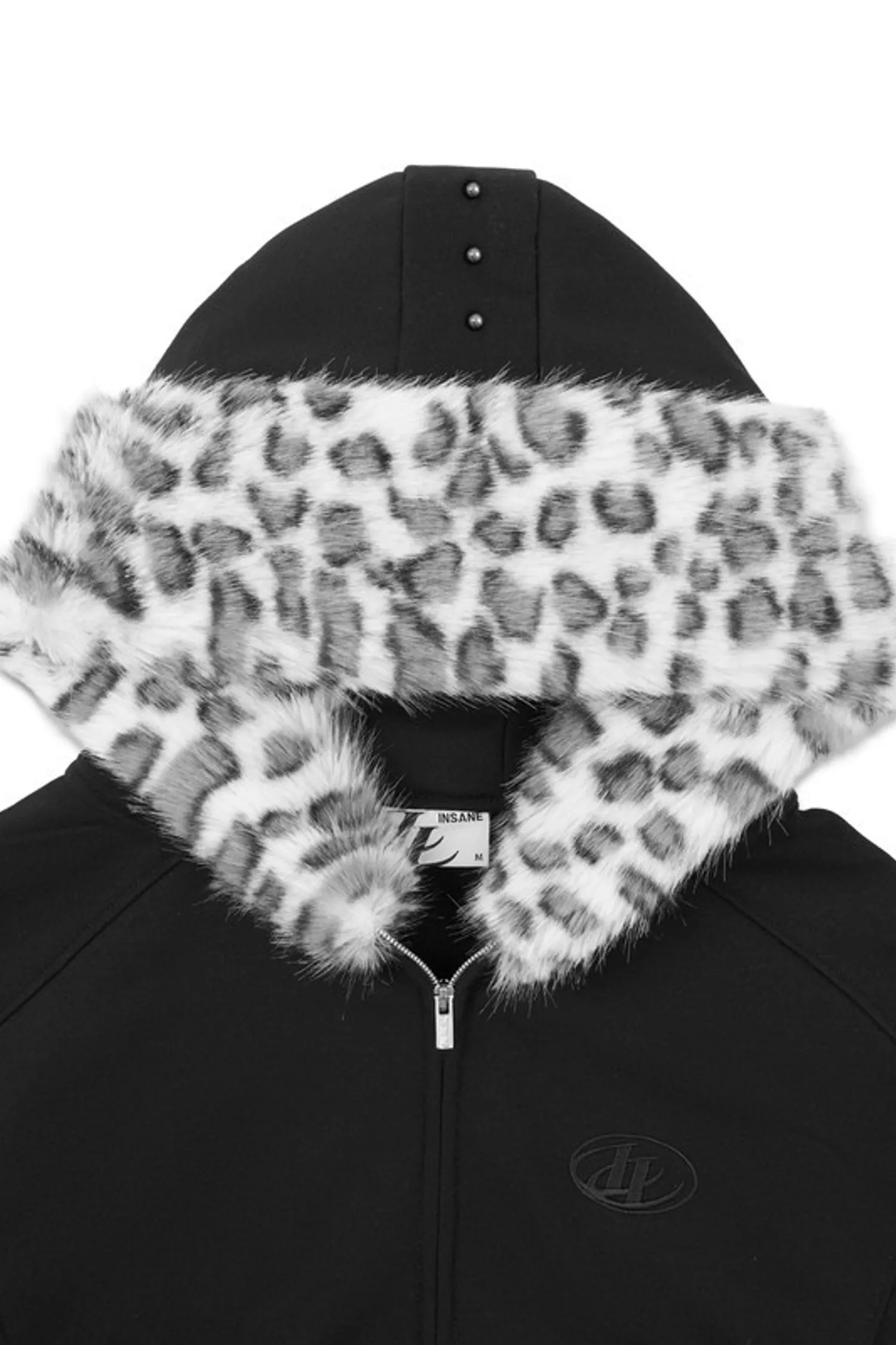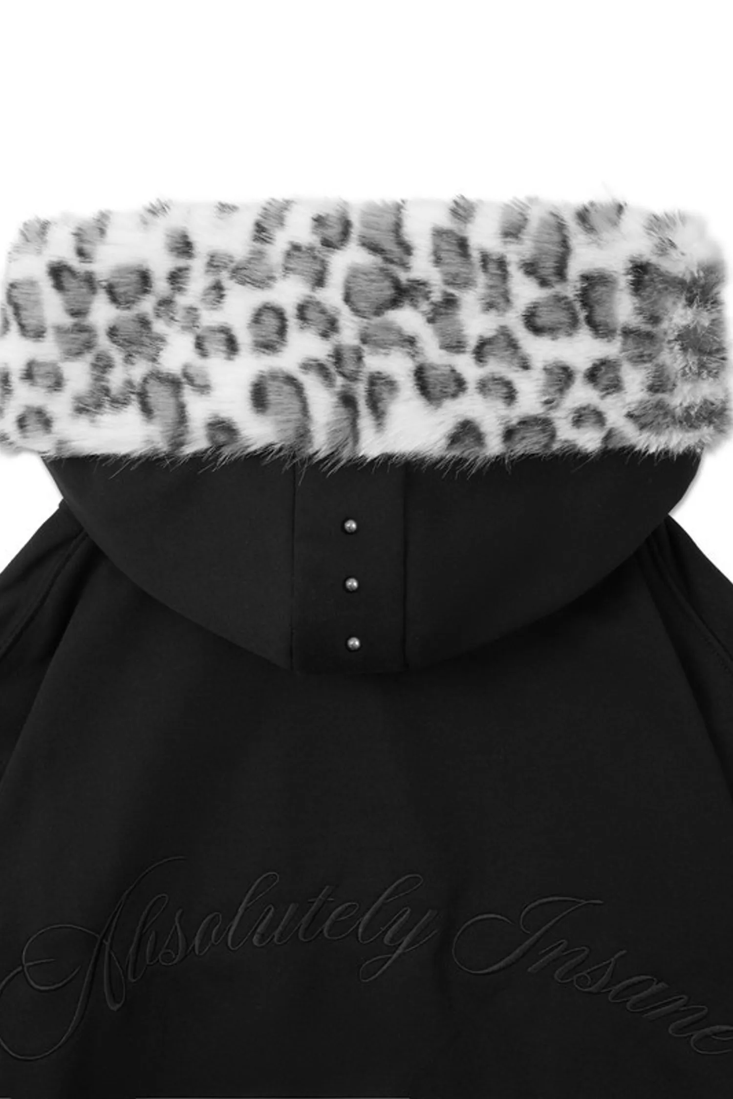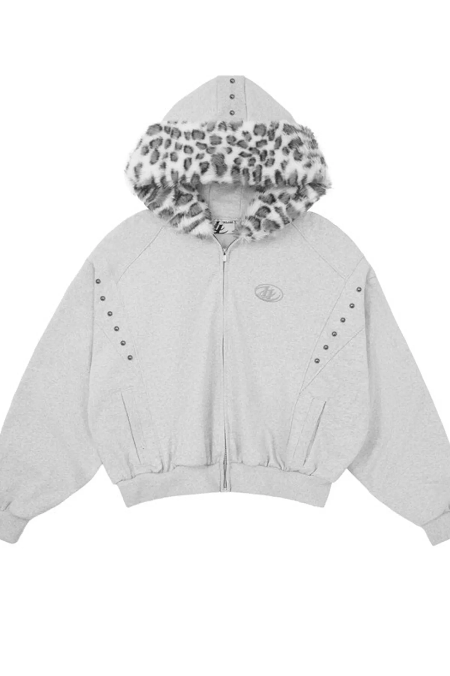 :厚實刺繡 + 金屬鉚釘 + 仿獸紋毛面料結合,呈現粗獷街頭質感