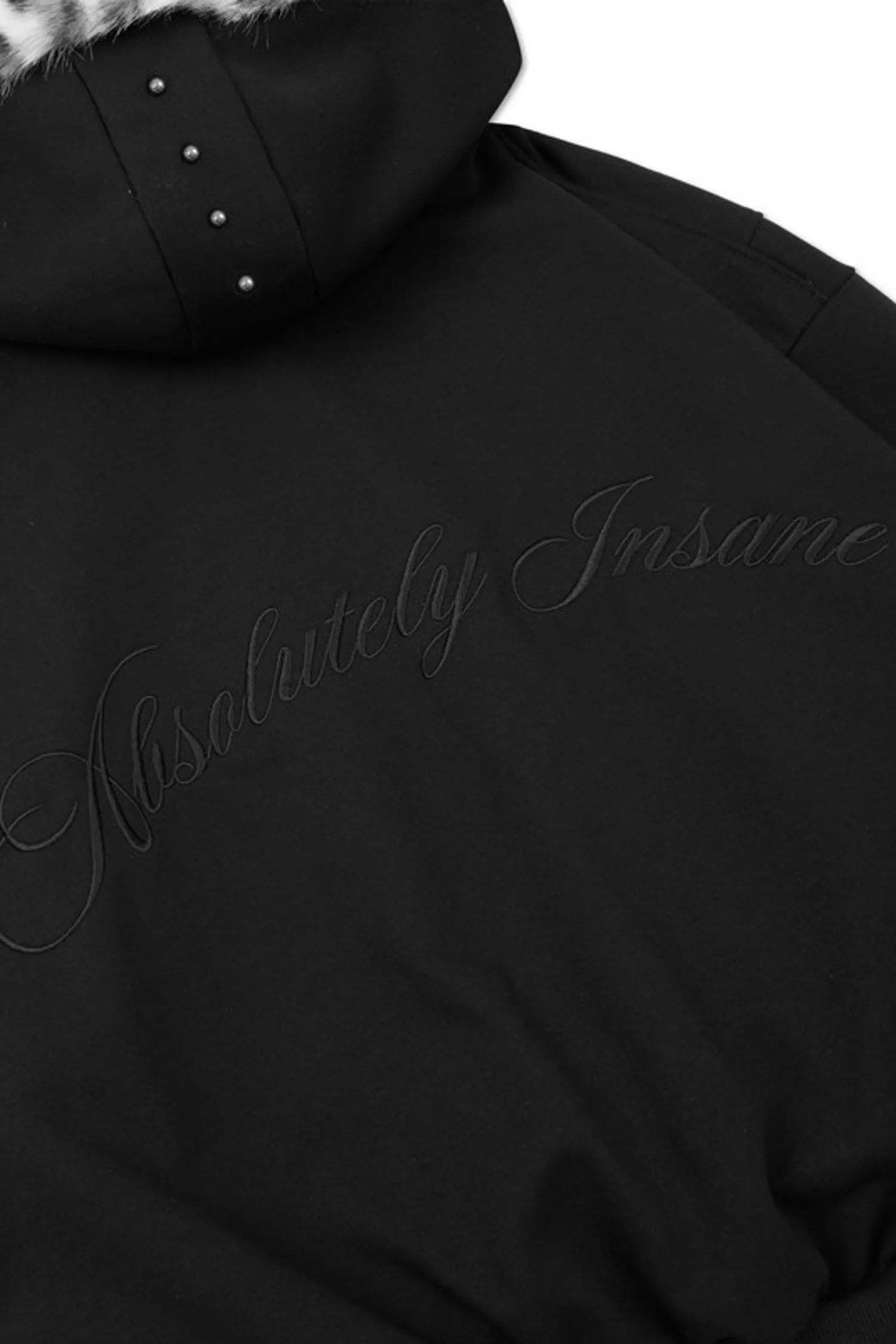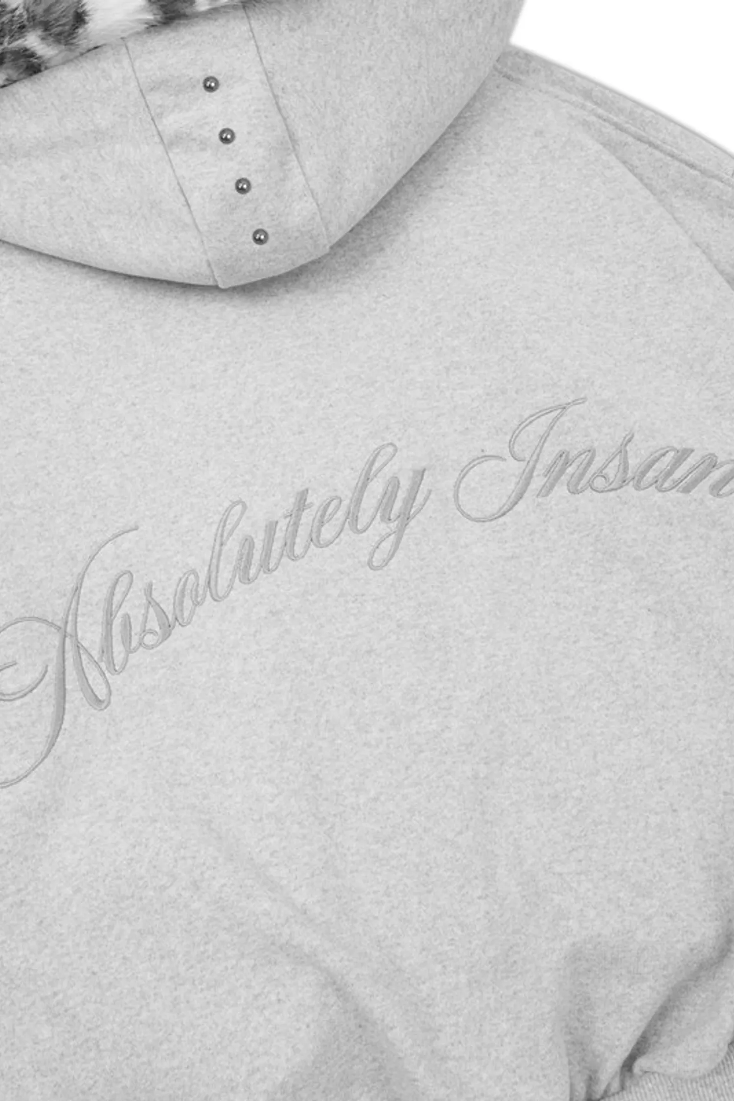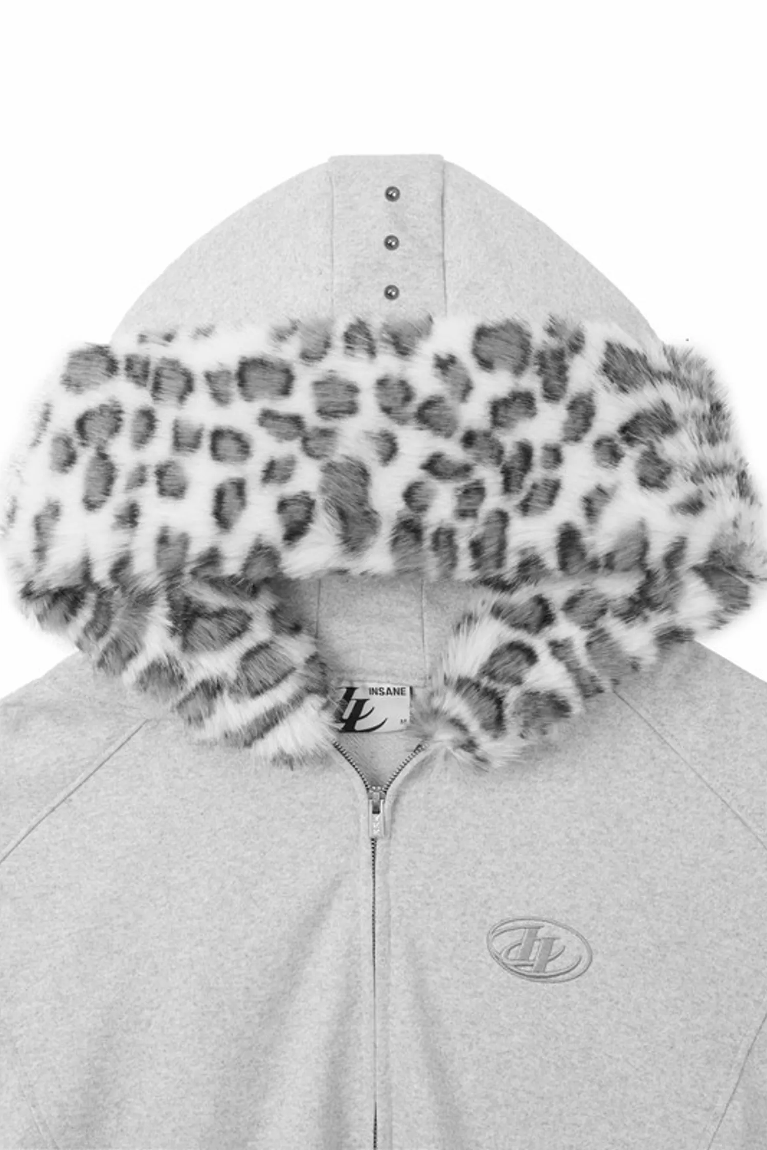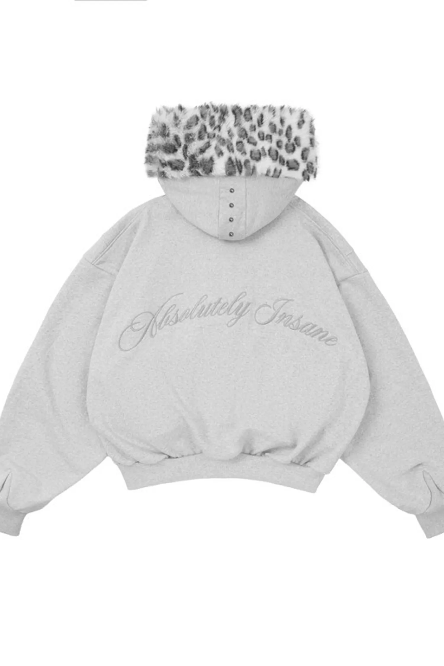 :厚實刺繡 + 金屬鉚釘 + 仿獸紋毛面料結合,呈現粗獷街頭質感