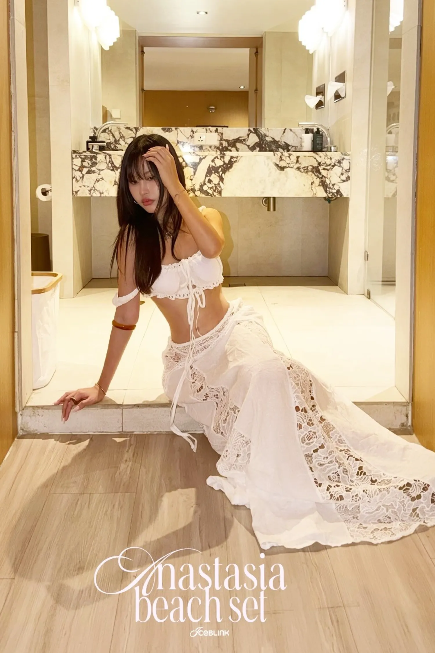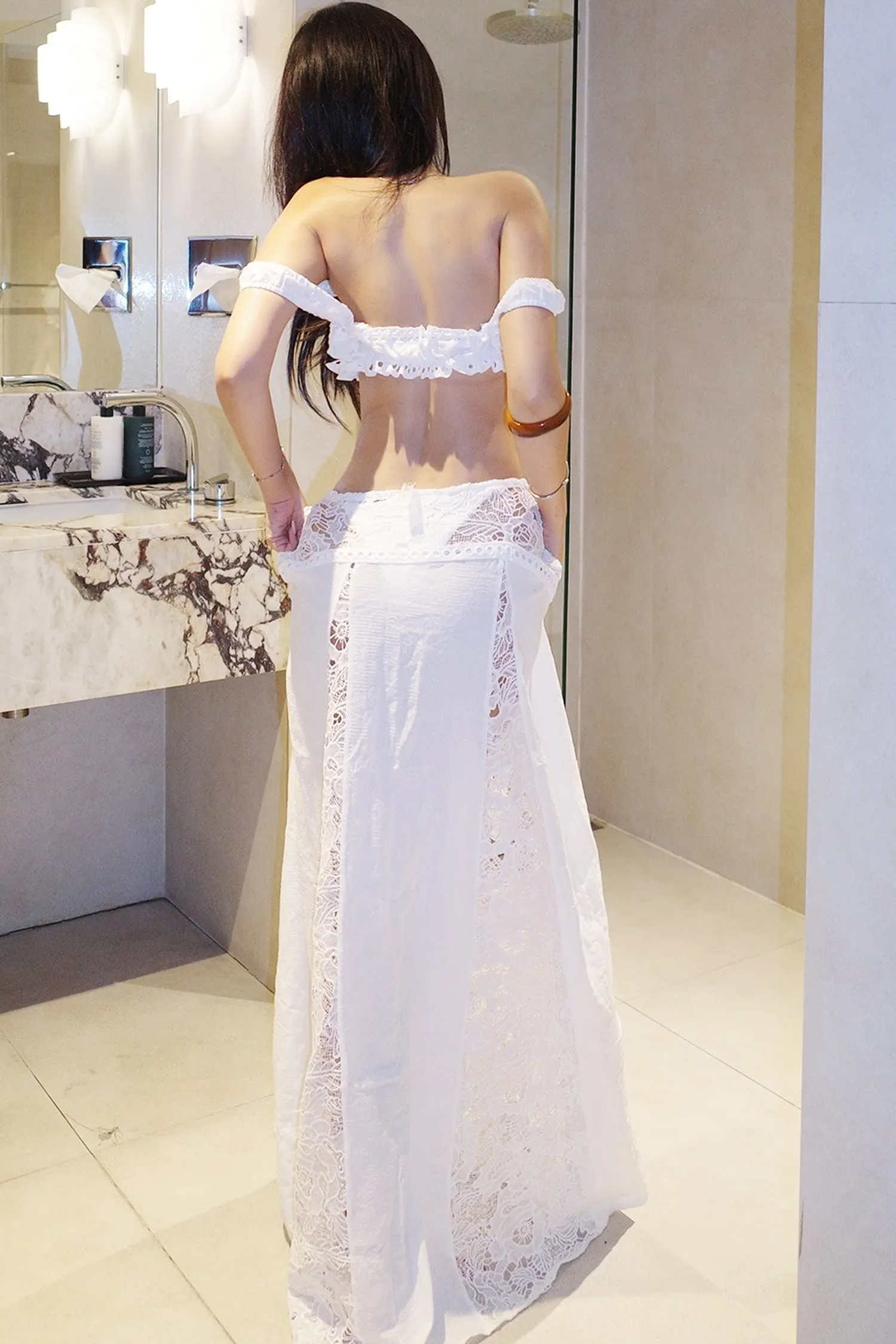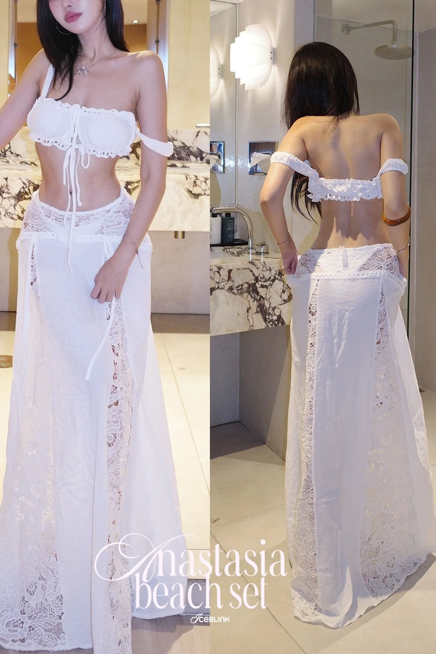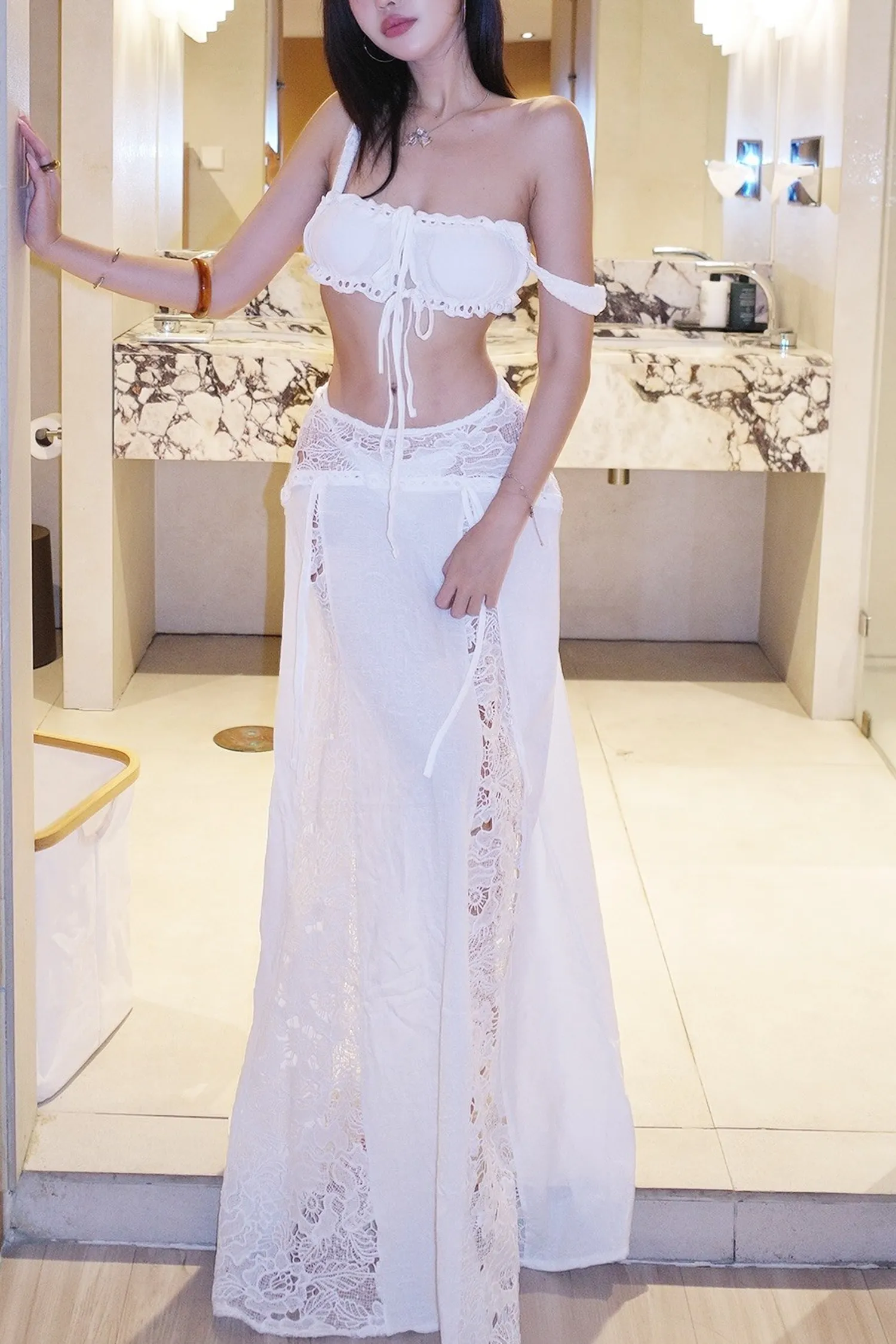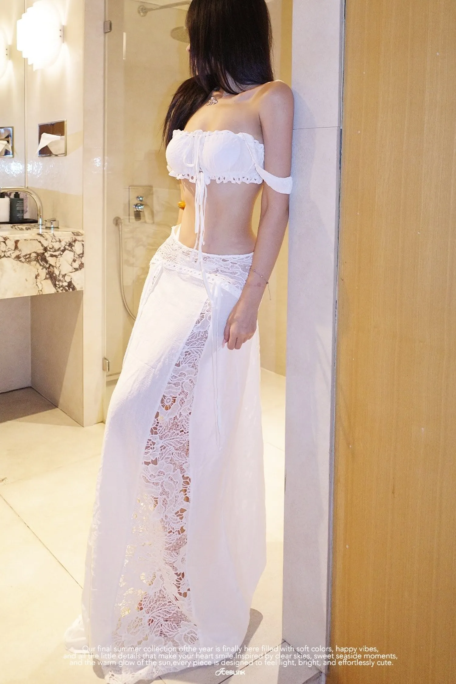 這套白色蕾絲裙裝的沙灘套裝散發著成熟姐姐的優雅氣質