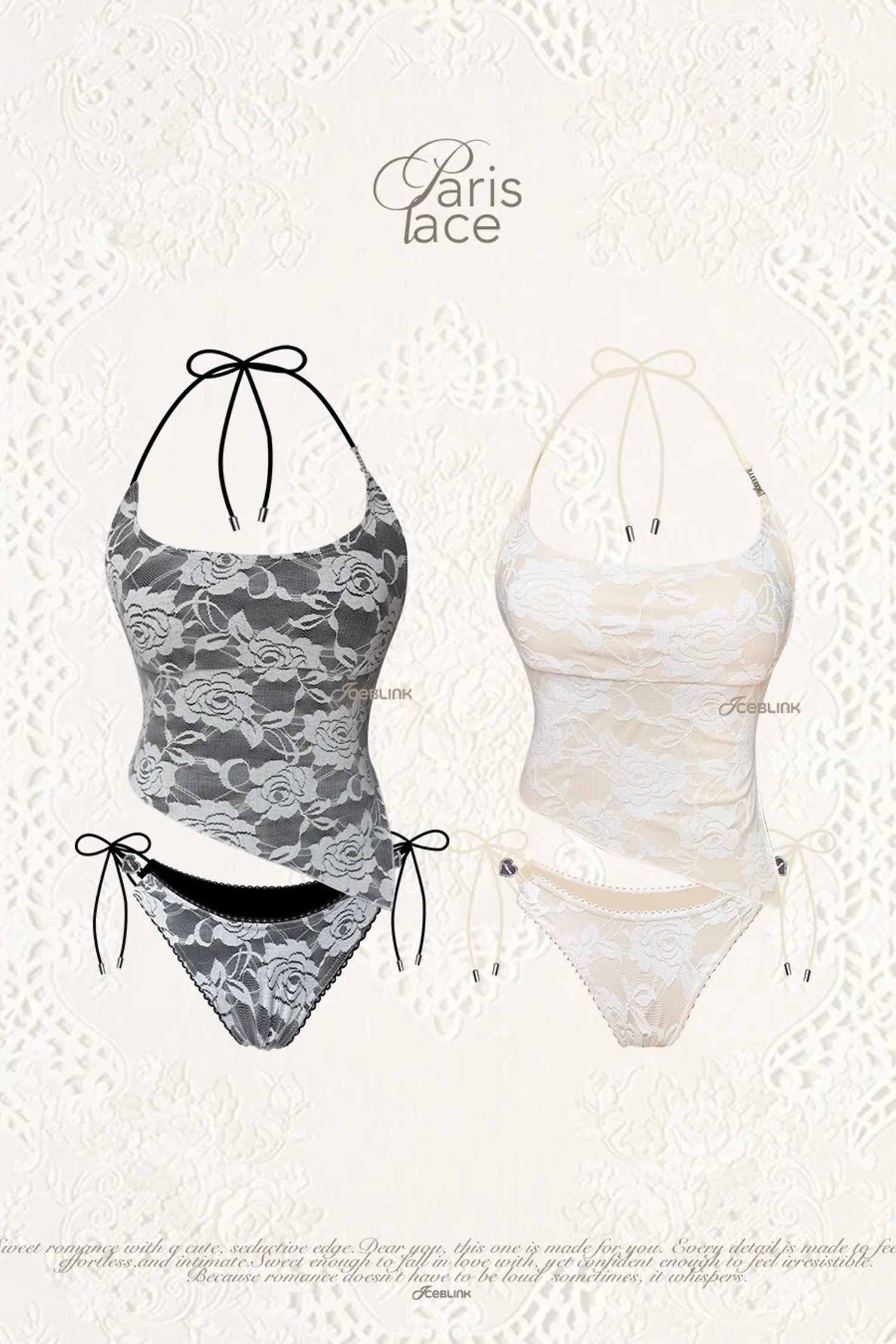 ୨୧⊹ ࣪ ˖ 商品介紹備受歡迎的蕾絲飾邊 該系列採用優質泳裝面料和襯裡製成,是今年所有女士的必備單品 💗胸罩肩帶可調節,可透過繫帶以多種方式佩戴💗內建海綿/海綿隔層和襯裡💗 為了保護布料,我們建議用常溫水手洗