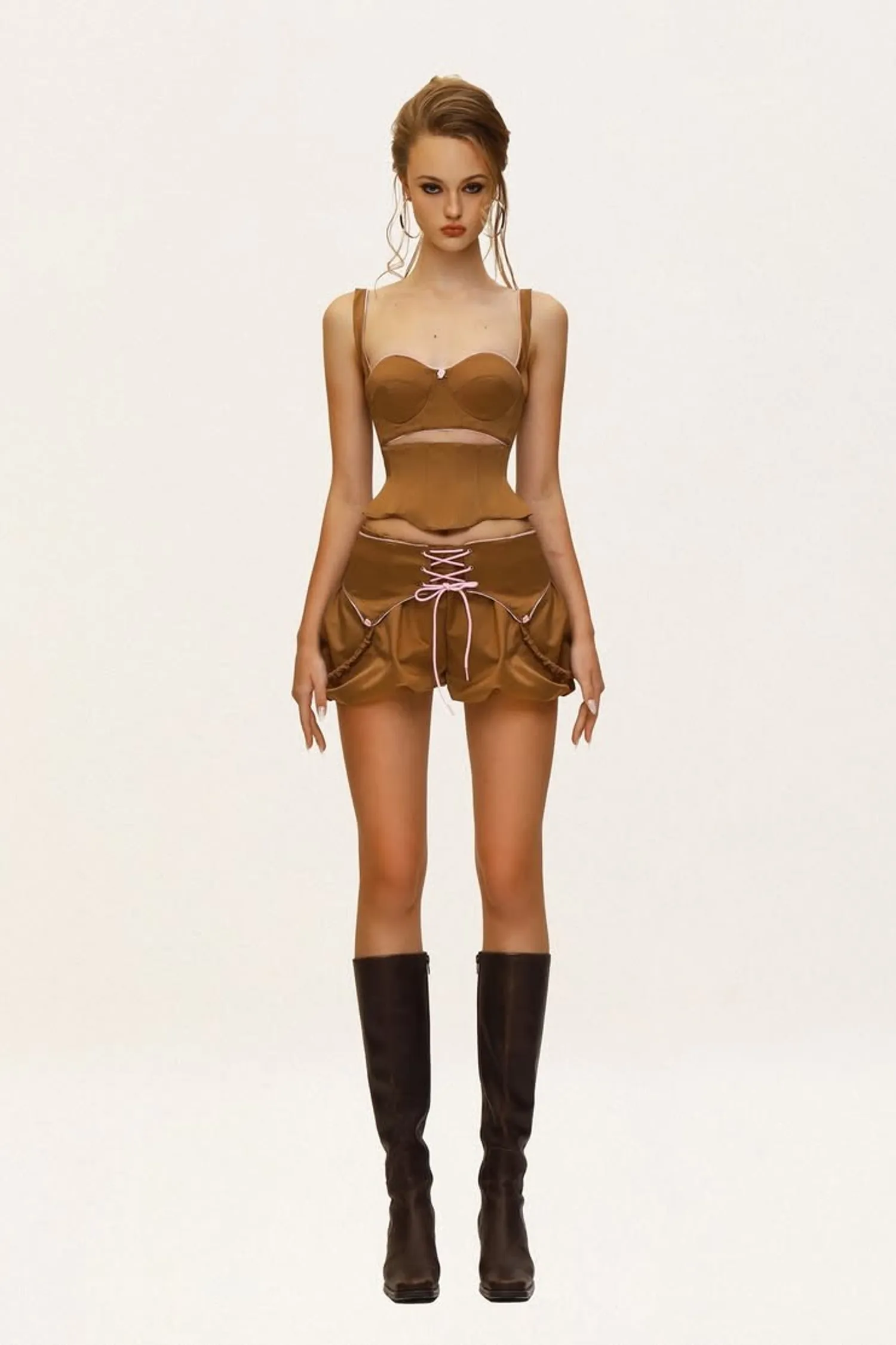立體胸型剪裁搭配合身馬甲結構,完整包覆胸腰線條,